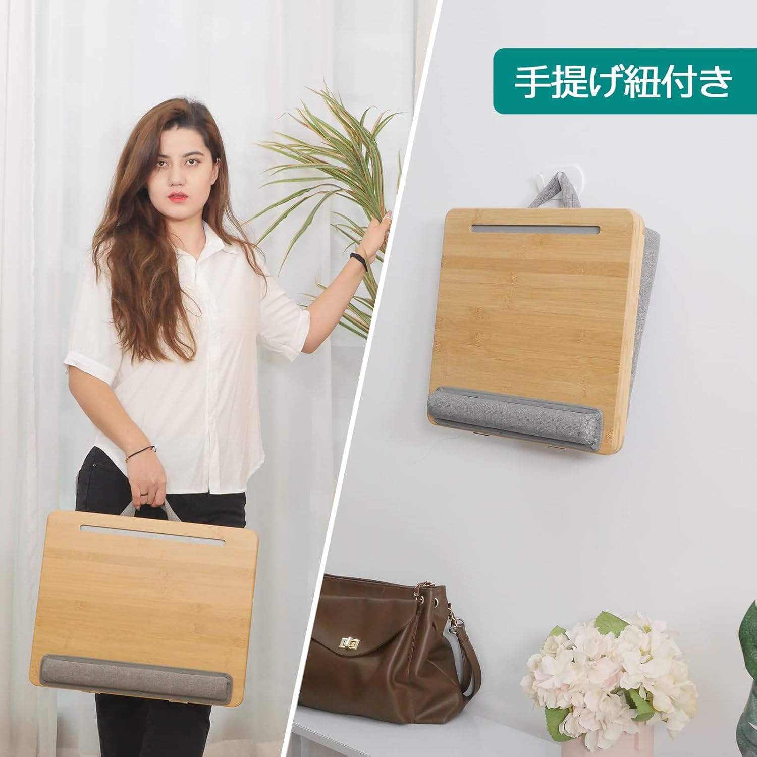OIWAI 膝上テーブル クッションテーブル ベッドテーブル 車 ハンドル 助手席テーブル マウステーブル テーブルクッション 膝上 ラップデスク 寝ながらパソコン テレワーク 角度&高さ調節可能 軽量 持ち運び便利 竹製