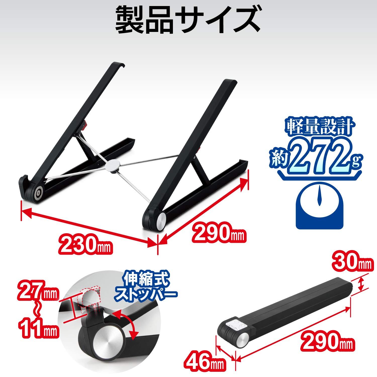 エレコム ノートPCスタンド 折りたたみ コンパクト 2段階角度調整 ~15.6インチノートPC対応 折りたたみ時サイズ:幅46×奥行290×高さ30mm 耐荷重:15kg ブラック PCA-LTSC2BK