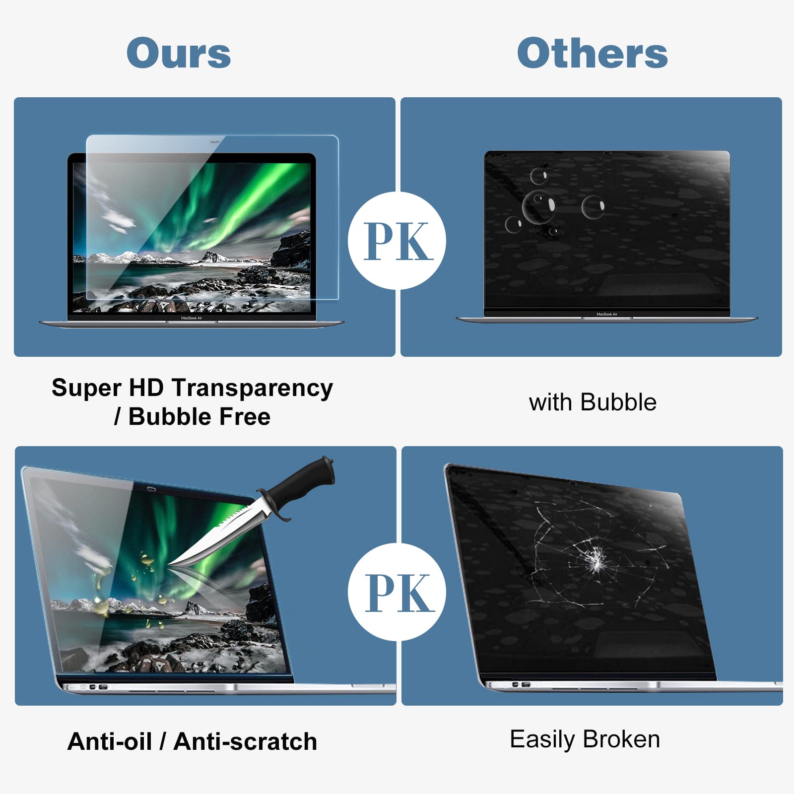ProCase MacBook Air 13 / Pro 13 スクリーンプロテク「2枚」、超薄0.22㎜ 強化ガラス 画面保護 貼り付け工具付き、対応機種:MacBook Air 13 2020 2019 2018 / MacBook Pro 13 2022 2020 2019 2018 2017 2016