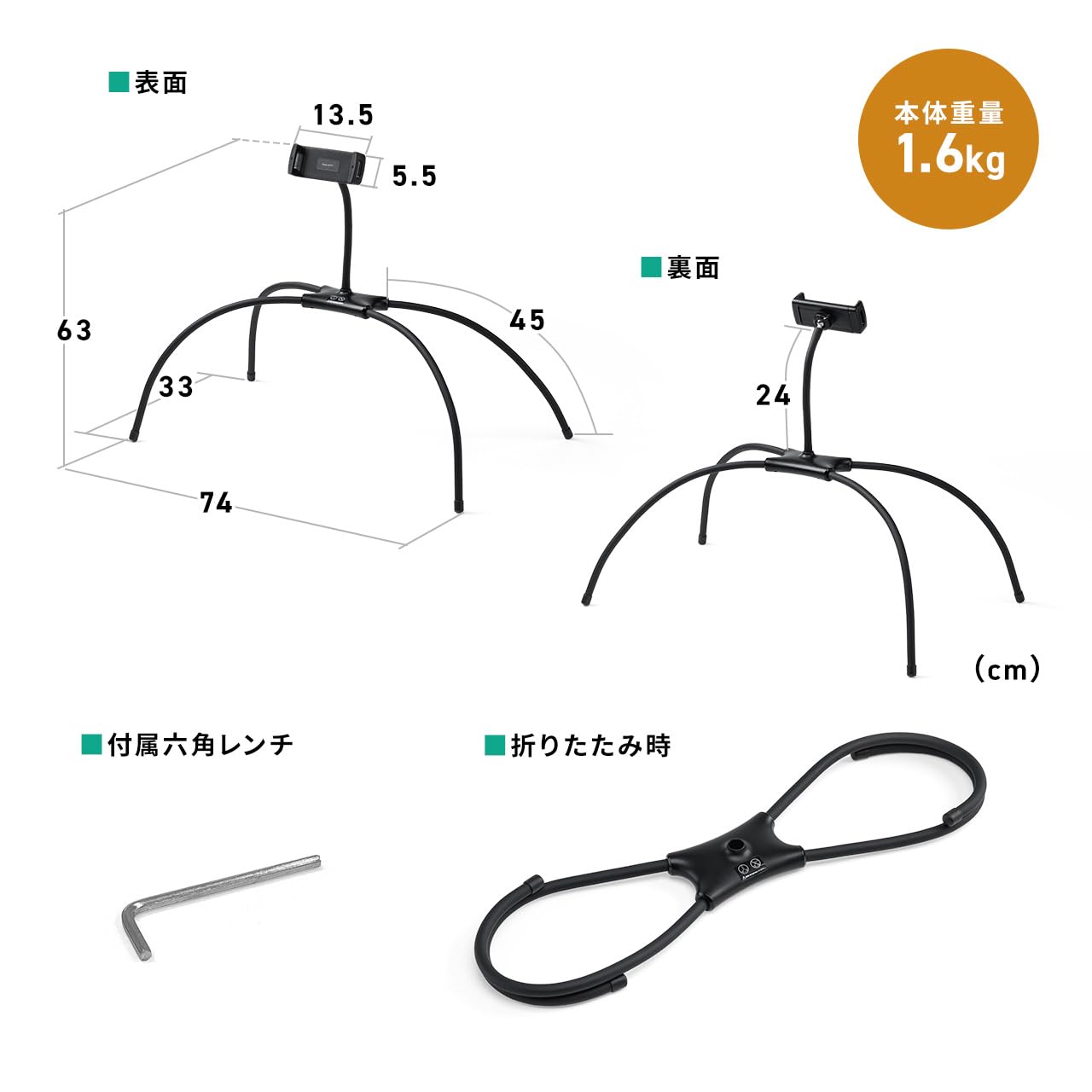 高さ12〜25cmまで対応し、厚さも約1.5cmまで対応しています。4.7〜17.3インチ程度の スマートフォン 、タブレットを設置できます。
