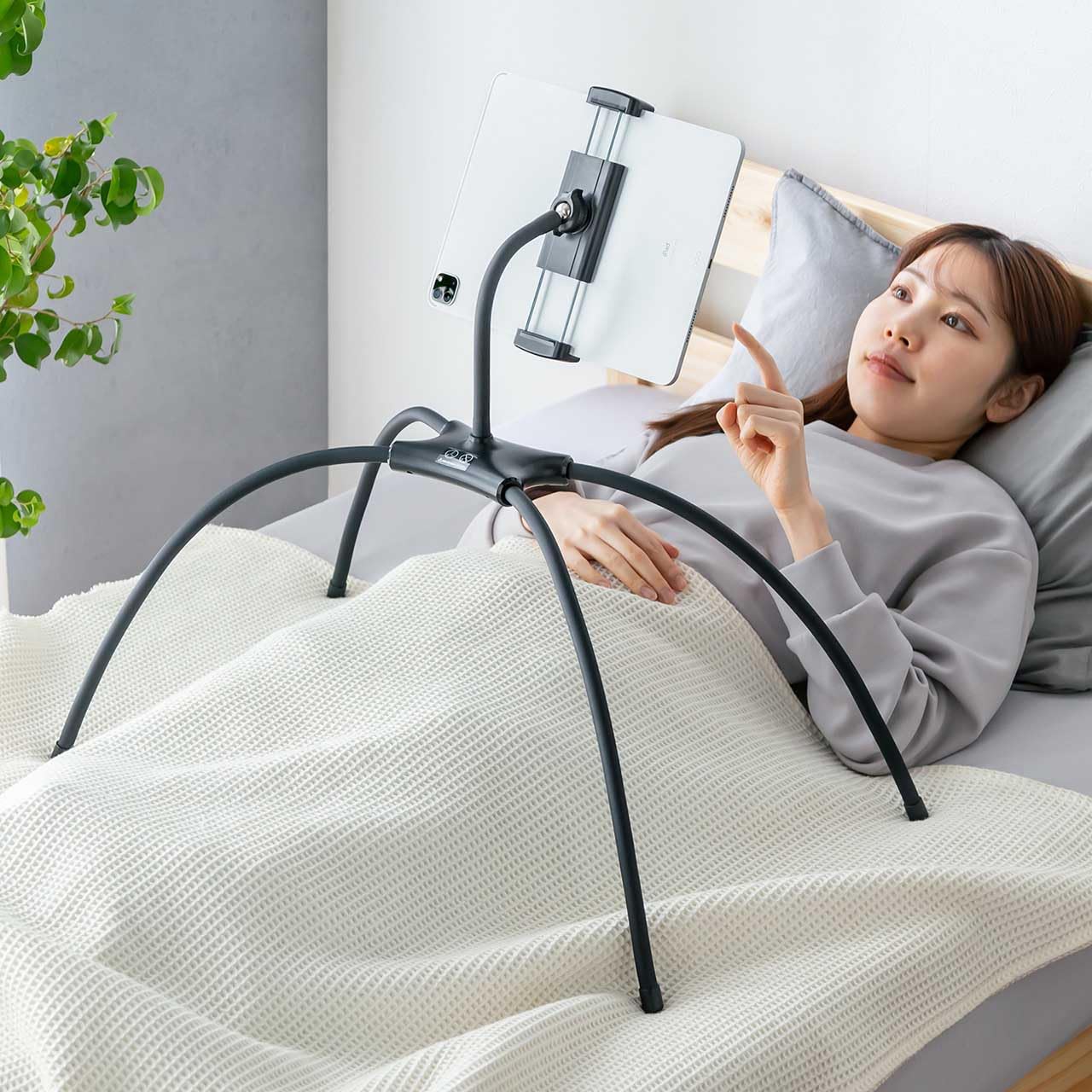 サンワダイレクト 寝ながら タブレットスタンド スマホスタンド フレキシブル 4本脚 360度回転 角度調整 アーム 布団 スタンド iPhone/iPad対応 寝ながらタブレット ブラック 100-LATAB022BK