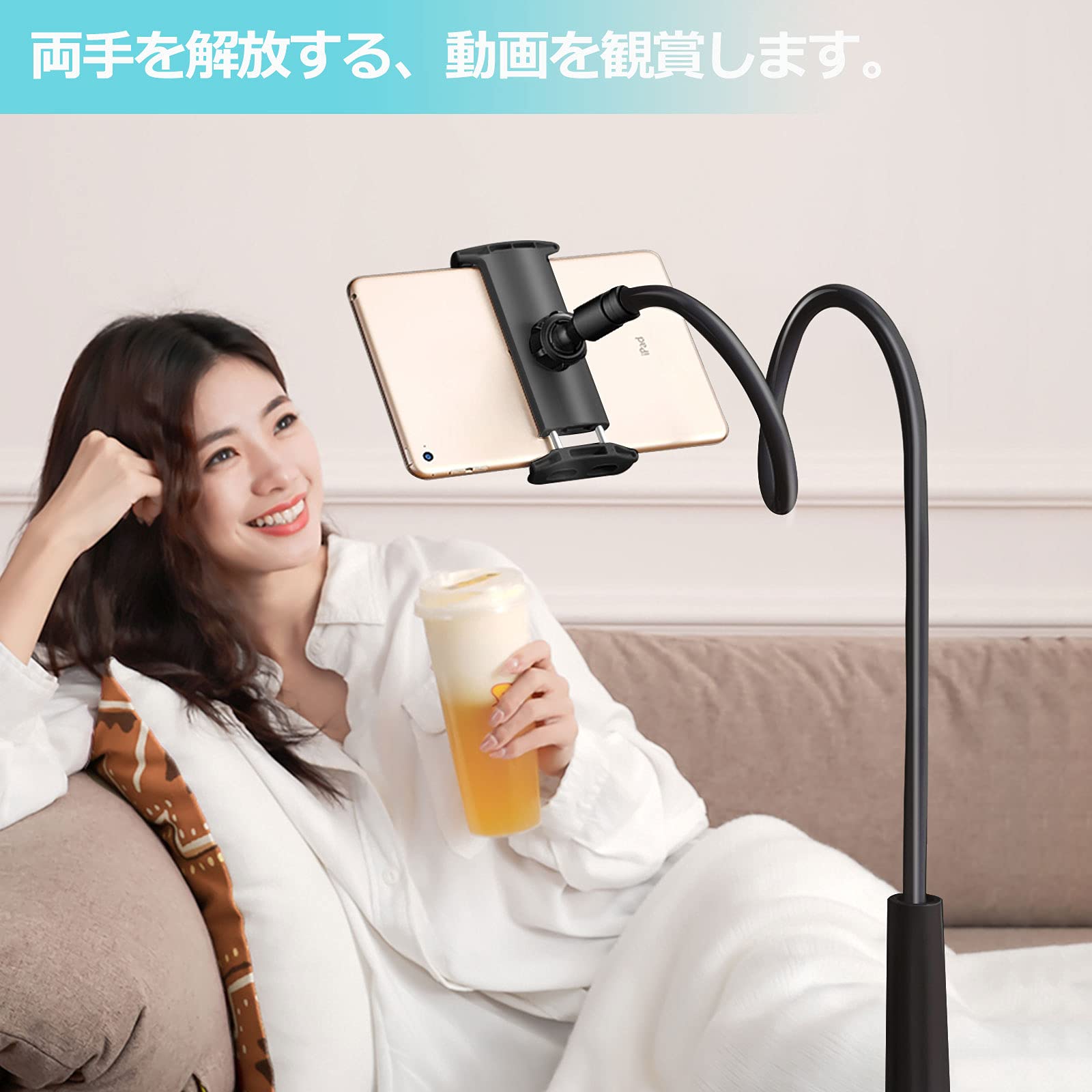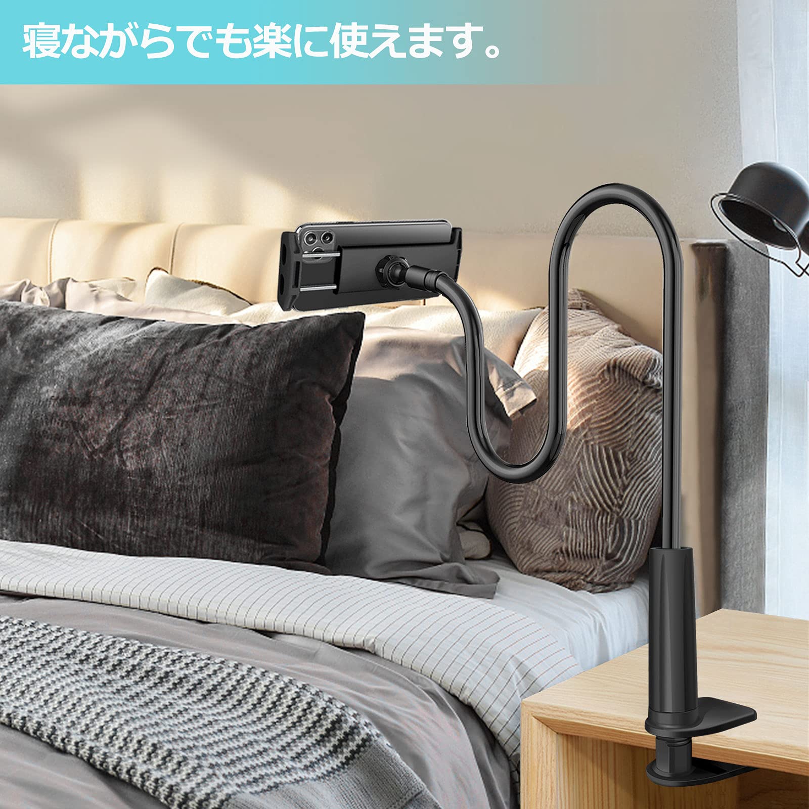 【在庫処分】AKEIE スマホ & タブレット スタンド or ホルダー 4-10インチ対応 フレキシブルアーム付き 寝ながらスタンドfor iphone ipad mini ipad air2 REGZA Xperia Galaxy SONY Kindle Switch (ブラック) | GIGATERA