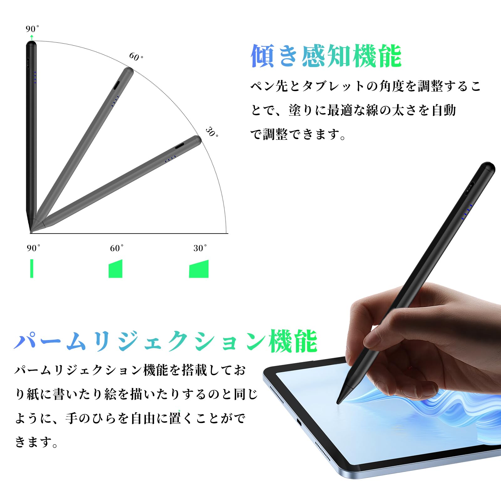 スタイラスペン ipad タッチペン 軽量 タブレット ペンシル 超高感度 アップルペンシル pro 高精度 アイパッド ペン パームリジェクション/傾き感知/磁気吸着 ipad mini6 ペン 2018年以降iPad/iPad Pro/iPad Air/iPad miniに対応