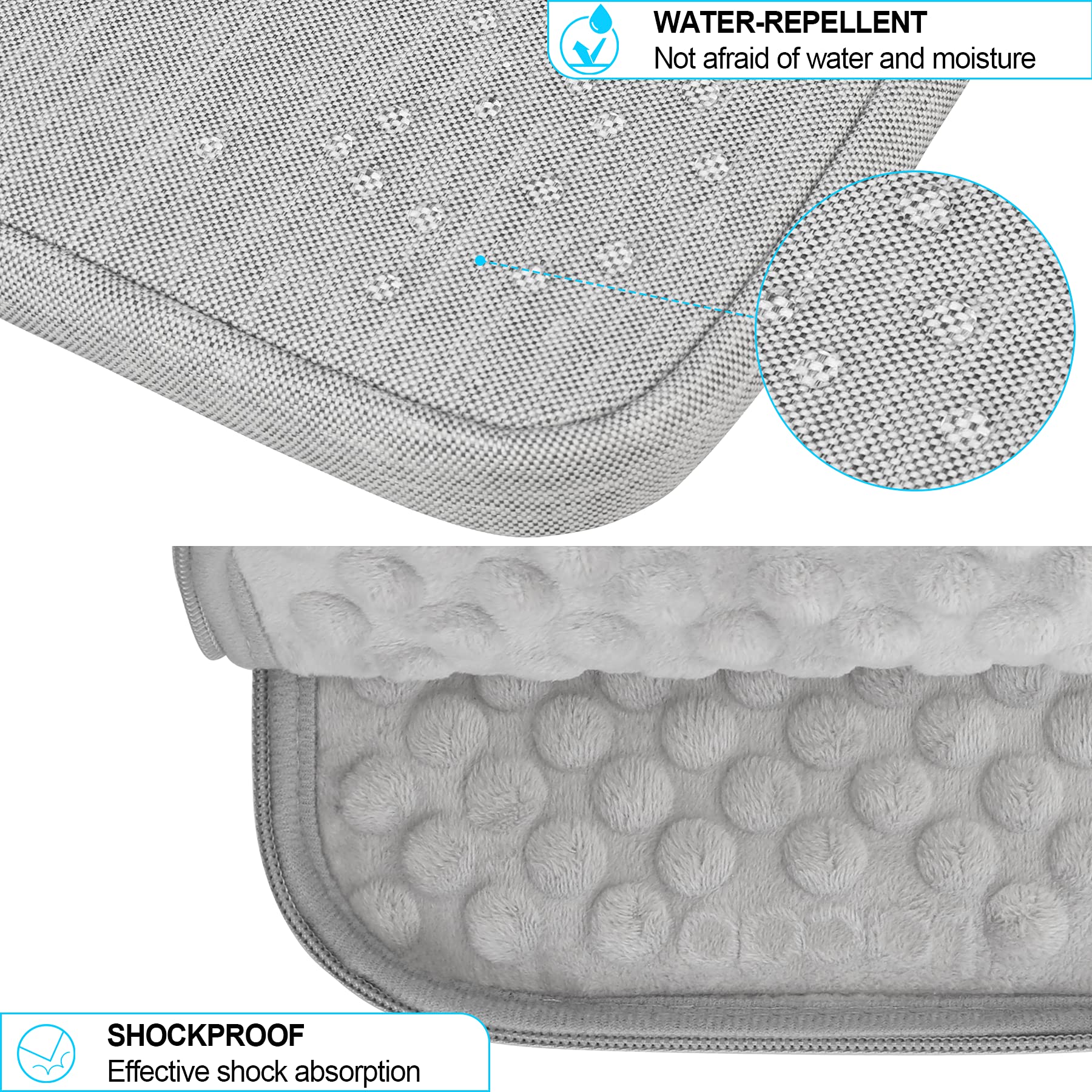 フワフワの耐衝撃性フリース生地の裏地 - 帯電防止、防水層、耐衝撃層、フワフワの生地の内層の3層構造の非常に柔らかい保護機能。タブレットを傷から守ります。