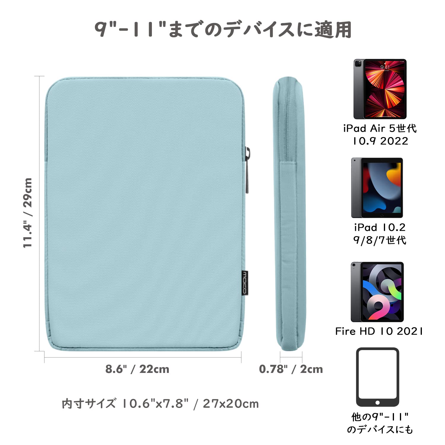 iPad 11世代 スリーブケース MoKo タブレットケース 9-11インチまで対応 ノートパソコンケース クロムブックケース 周辺機器小物収納 ポリエステル製 Chromebook/iPad Air/Pro 11インチ(M3/M2)/iPad 10世代/iPad Air 5/4/iPad 10.2/iPad 9.7/Fire HD 10 ノート・タブレットPCに適用 男女兼用 MistBlue