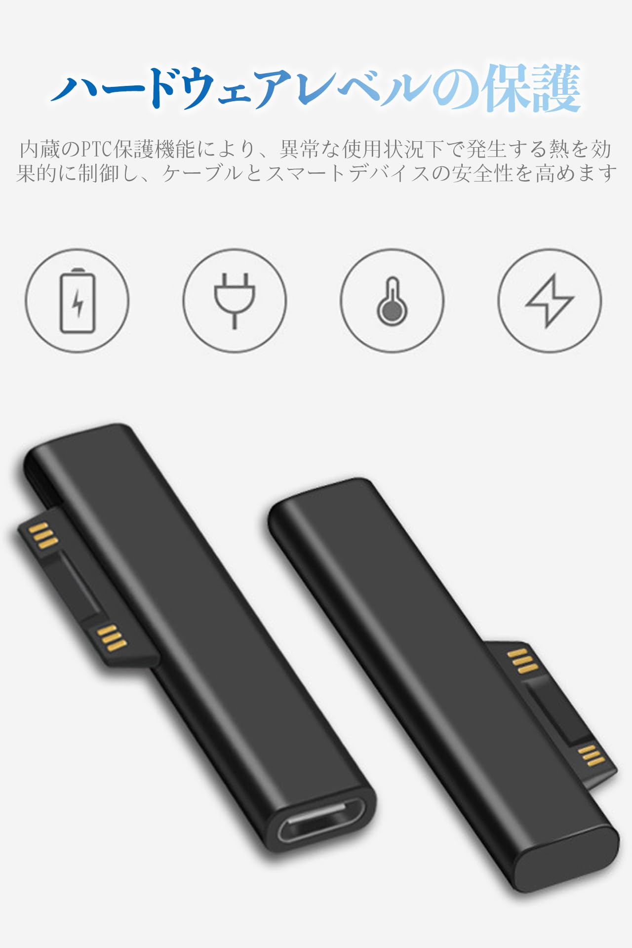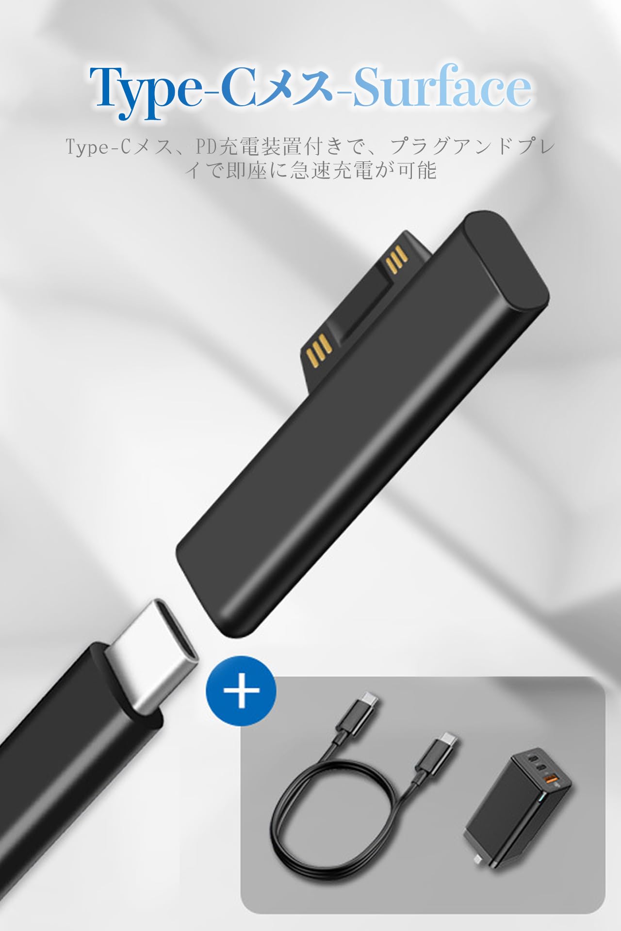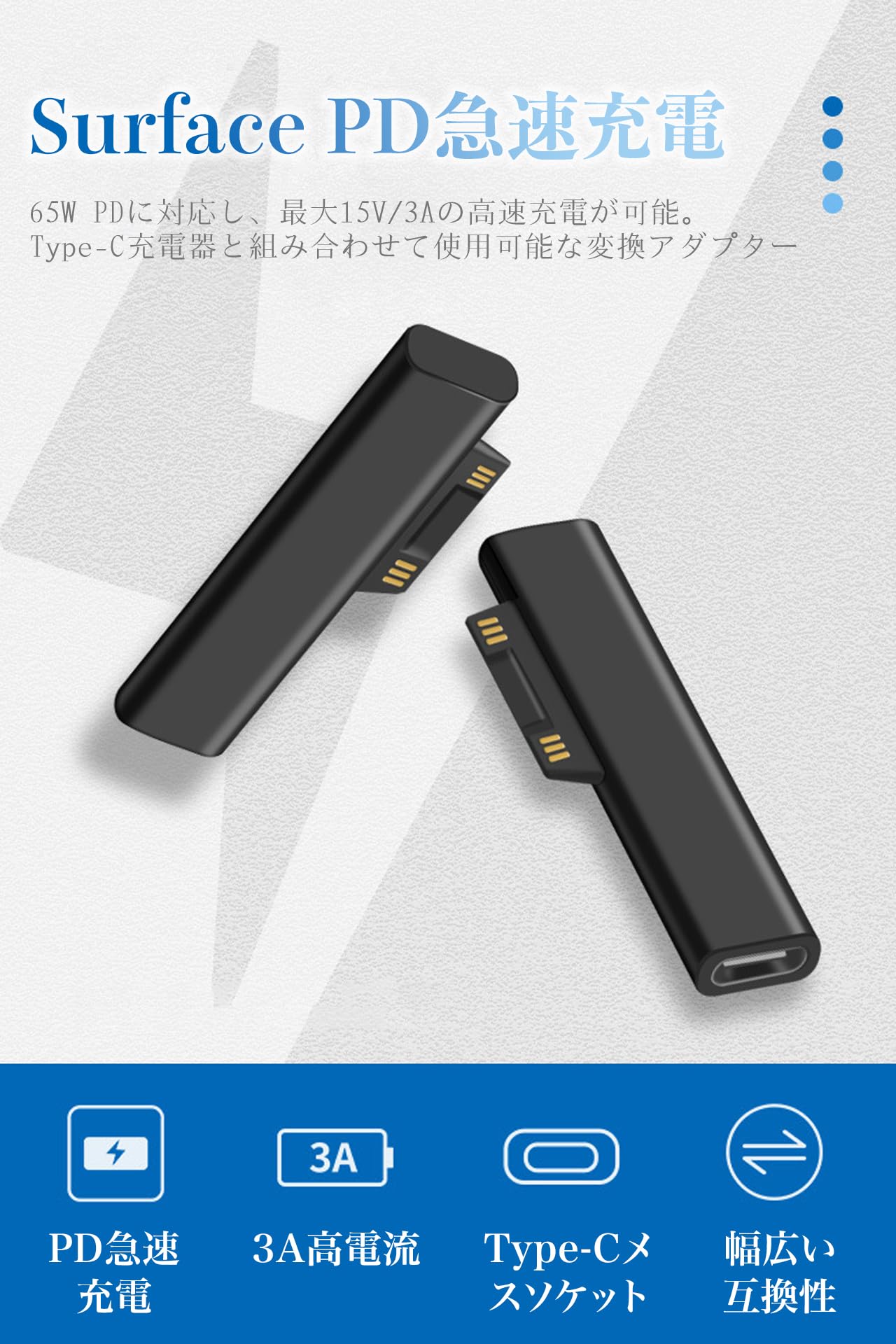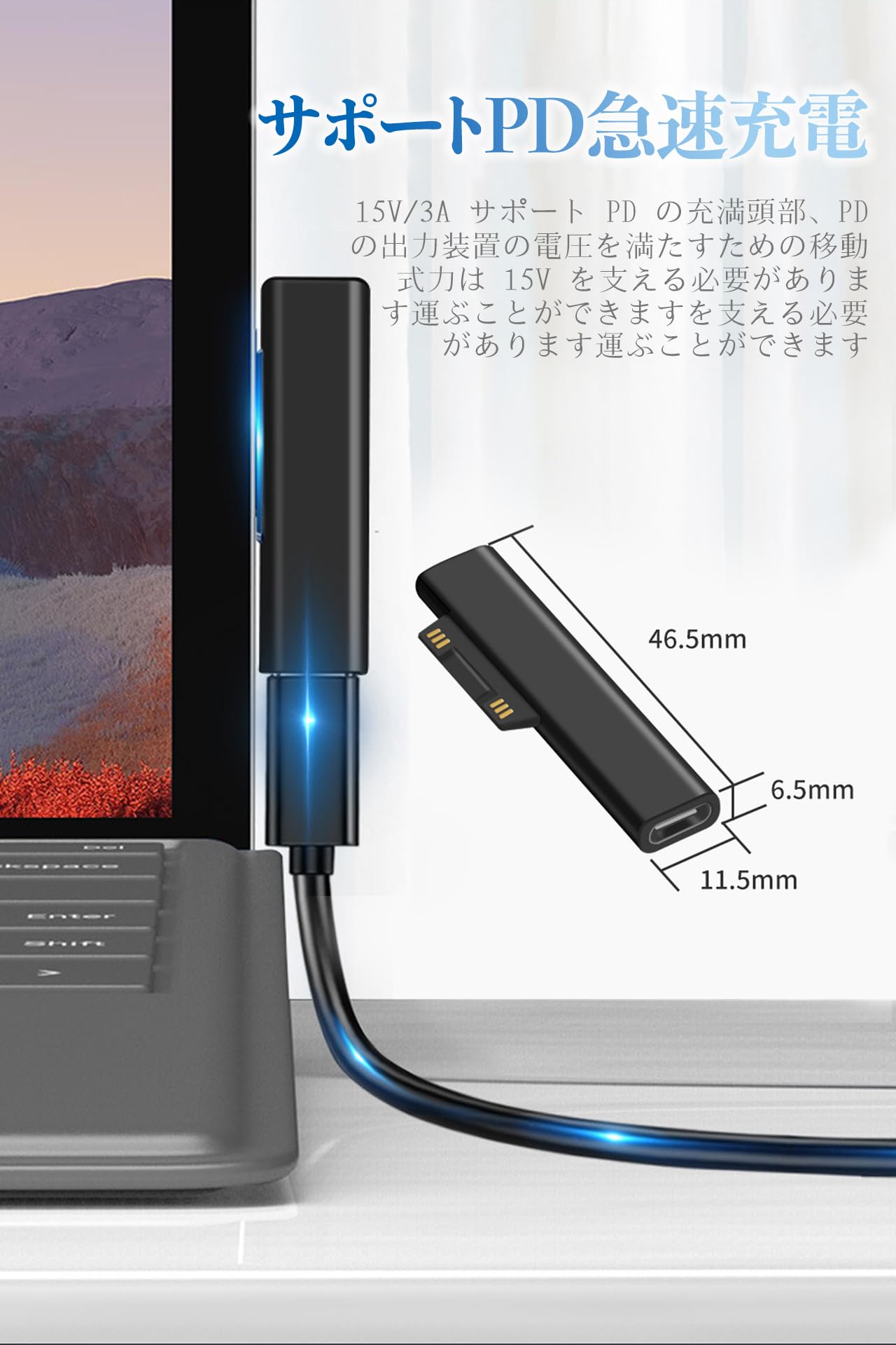 Type-C to Surface 変換アダプタ PD65W給電対応 15V/3A高速転送 Surface Pro/Book/Laptop全モデル接続 タブレット対応 自動吸着 脱落しにくい 抜け止め機構 コンパクト設計 データ同期可能