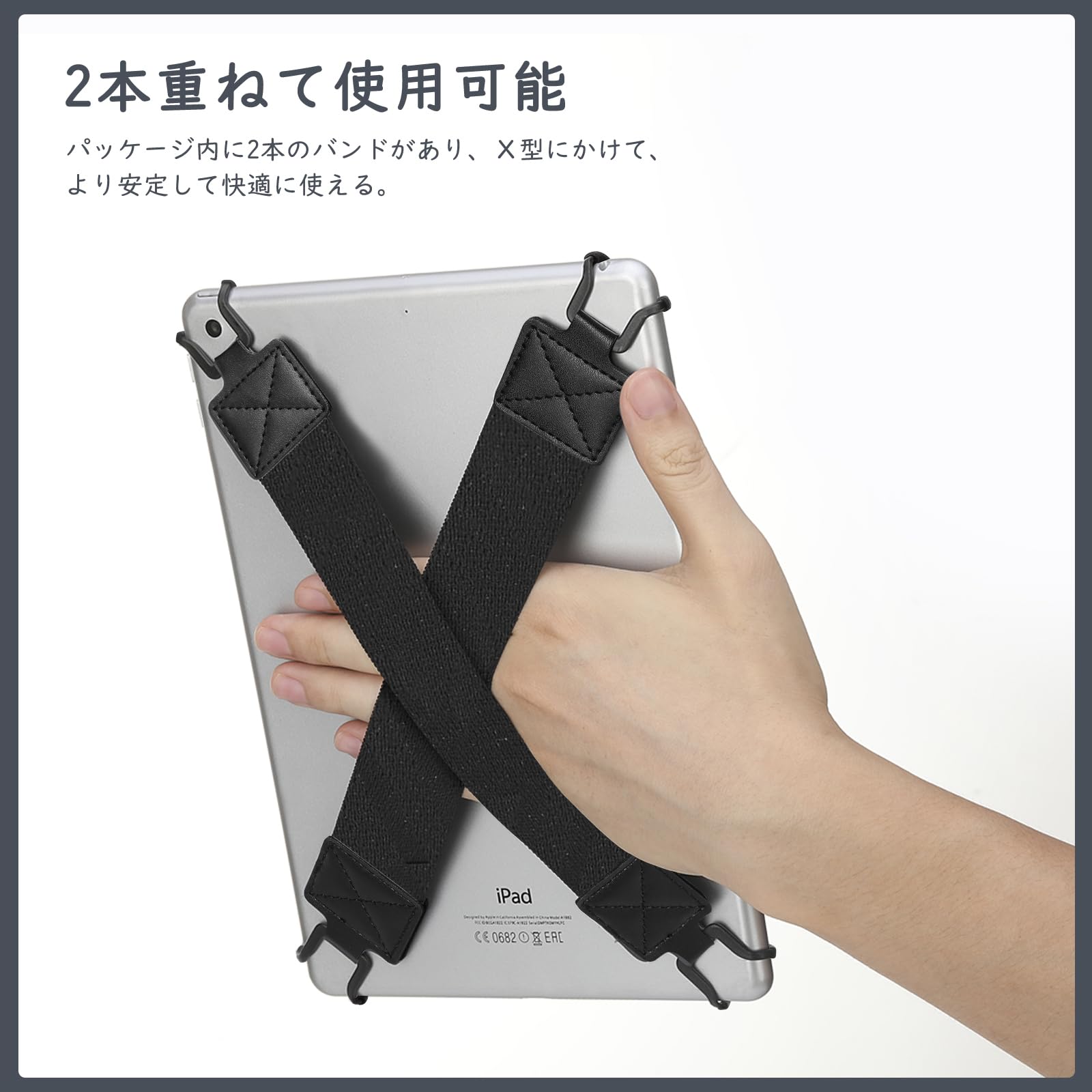 TiMOVO タブレットバンド 2個入り タブレットPC用安全ハンドストラップ 片手持ち 落下防止 取り外せる 9-11インチ対応-ipad 第11/10/9/8/7世代、iPad Air 7/6/5/4、iPad Pro 11、Fire HD 10、Redmi Pad SE 8.7/Pad 2 黒Band+ブラック