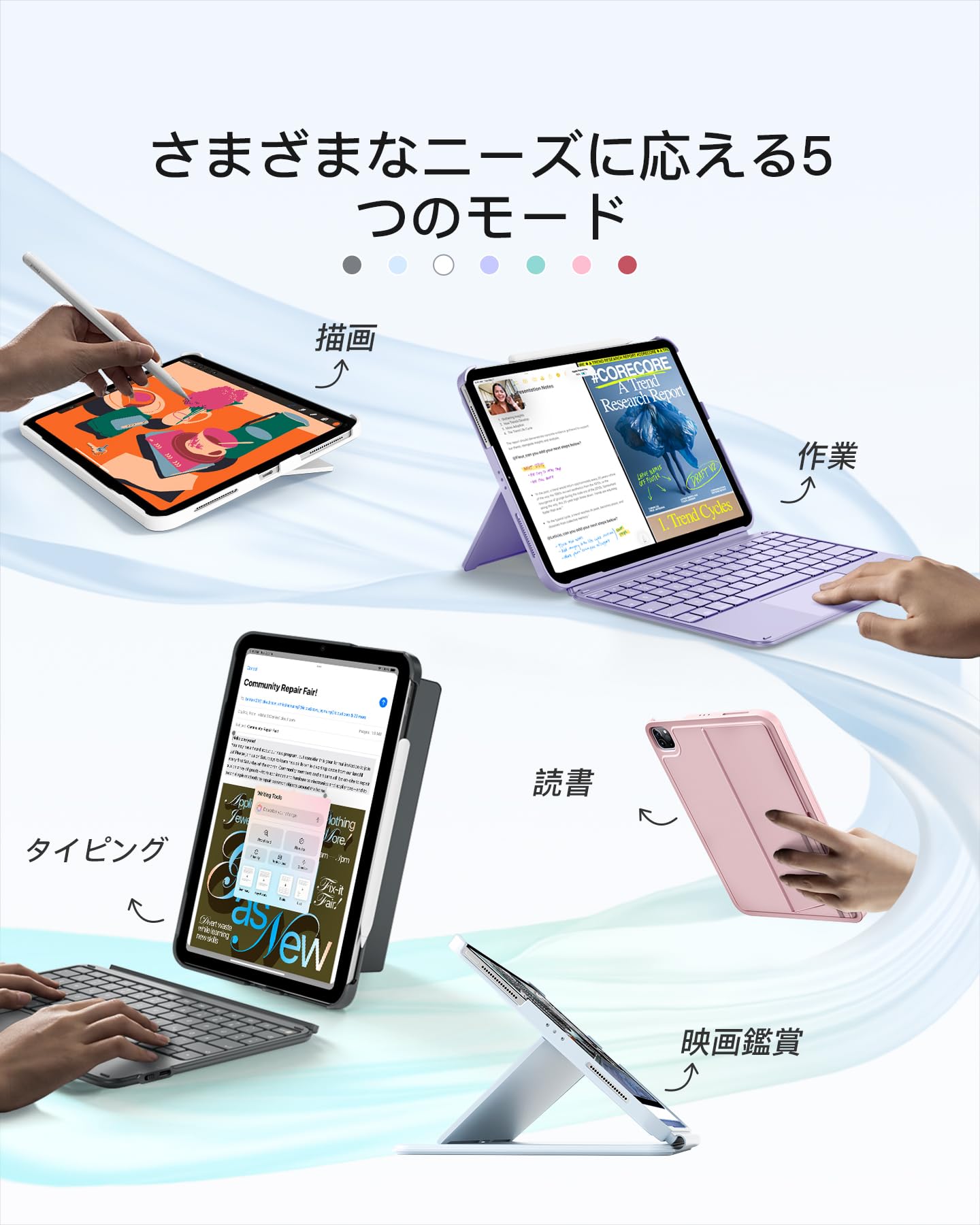 互換性:iPad A16 第11世代/第10世代、iPad Air 11インチ M3 2025/M2 2024、iPad Pro 11インチ第4/3/2/1世代、iPad Air 第5世代/第4世代(10.9インチ)向けに特別に設計されています。iPad Pro 11 第4世代 2022(A2435/A2759/A2761/A2762)、iPad Pro 11 第3世代 2021(A2301/A2377/A2459/A2460)、iPad Pro 11 第2世代 2020(A2228/A2068/A2230/A2231)、iPad Pro 11 第1世代 2018(A1980/A2013/A1934/A1979)と互換性があります