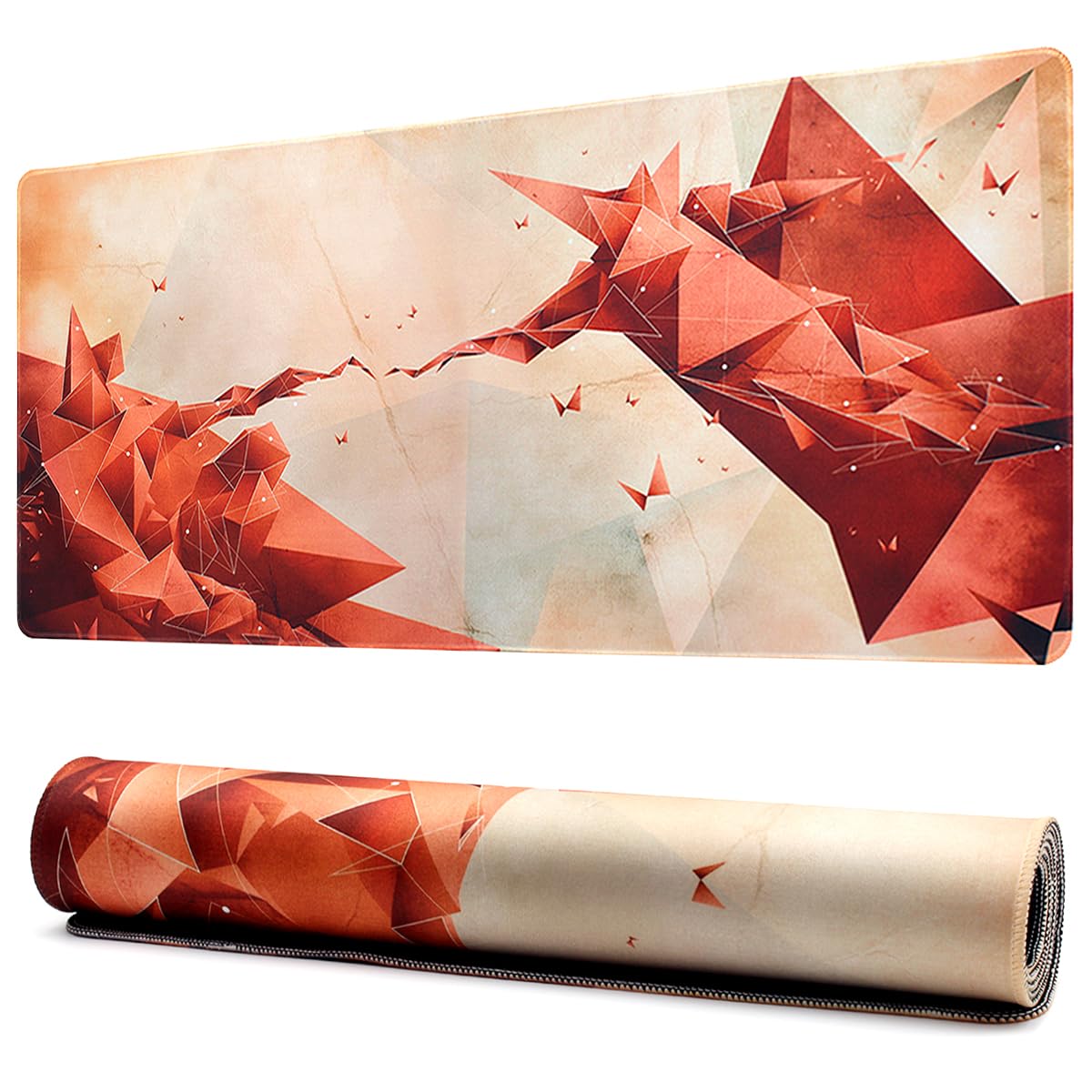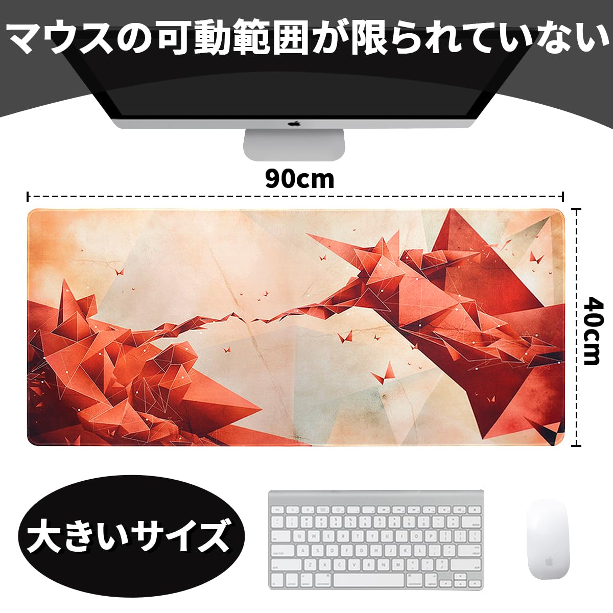 【特価在庫】Benvo マウスパッド 超大型 防水 ゲーミング マウスパッド 90*40cm キーボードパッド 滑り止めゴム底 滑り止め マウス対応 耐洗い表面 快適操作性 (茶色と赤の幾何模様) | GIGATERA