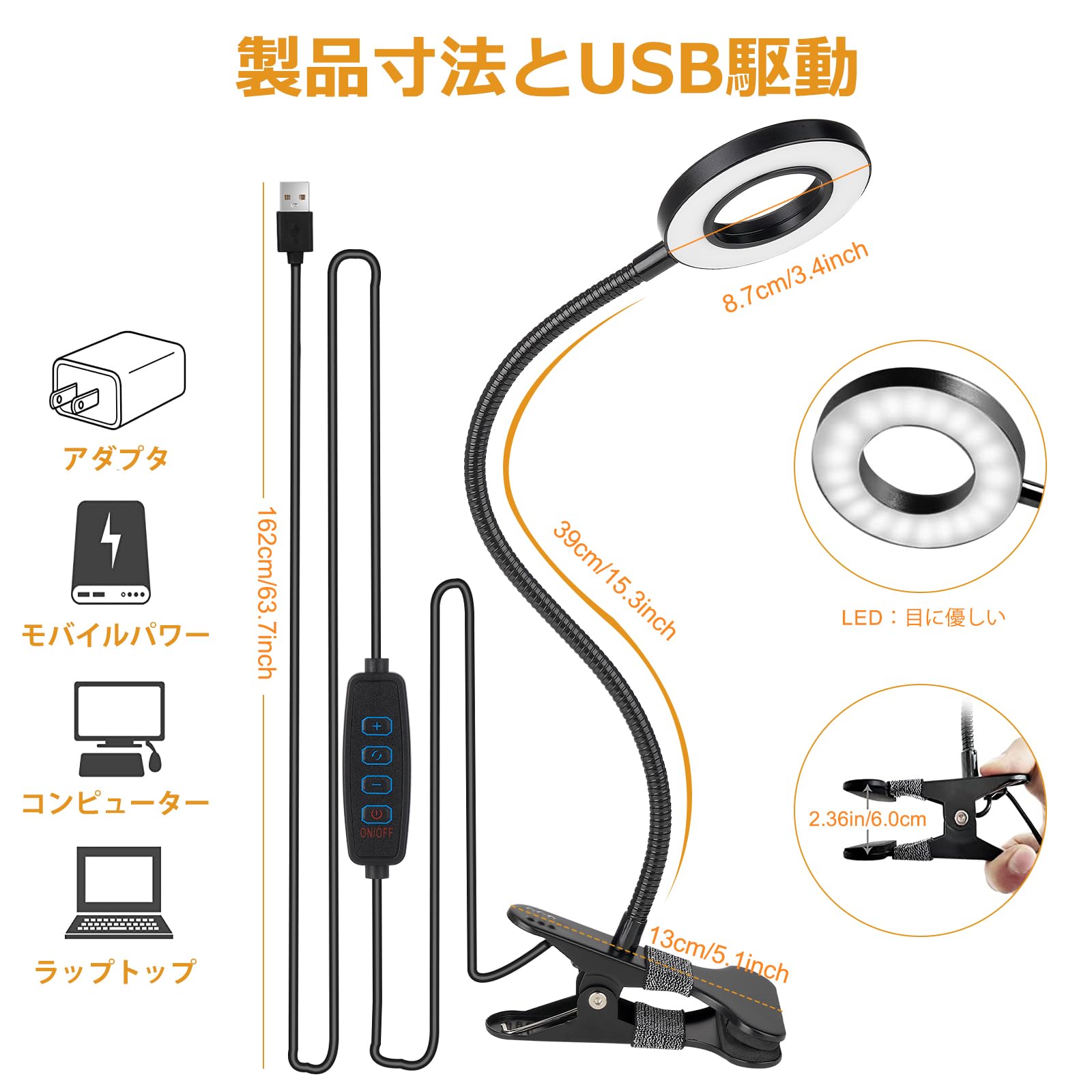 クリップライト ledライト Adoric 明るい USB給電式照明 読書灯 3色4階段調光 卓上ライト 40LED 折り畳み型 自撮りライト 会議ライト イーゼル メイクライト