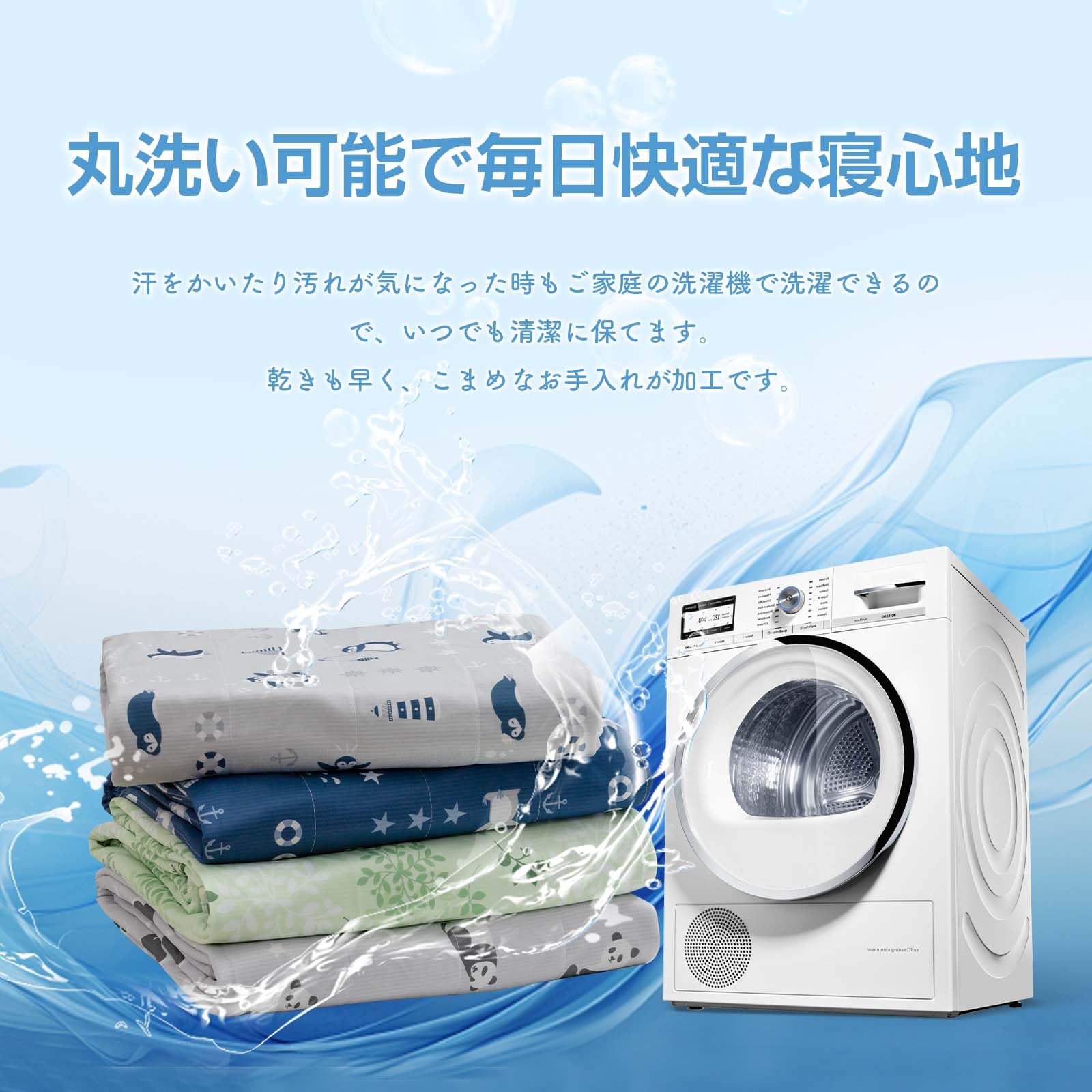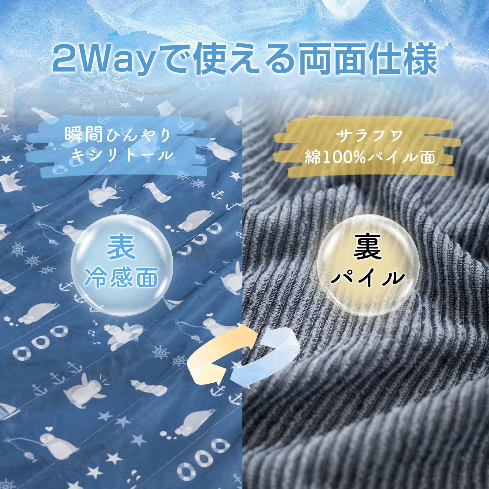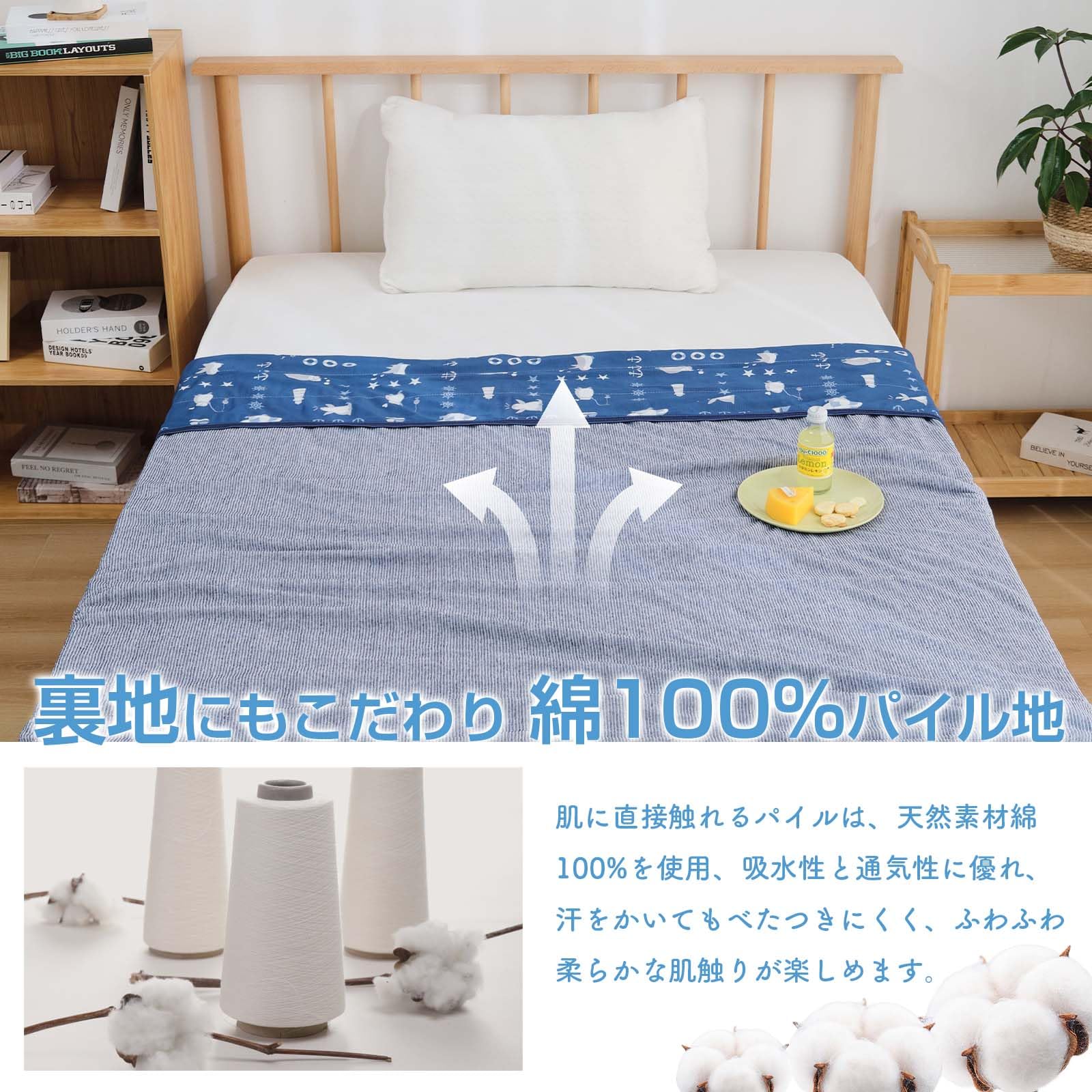 【綿100%タオル地】コットン素材は優れた通気性・吸湿性があり、不快な汗や湿気を吸って、素早く乾きます。いつもさらりと快適。肌触りがふんわりして、敏感なお肌の方でも心地良く快適に過ごすことができます。夏の深夜の時、温度が下がって、この面を使用してちょうどいい。