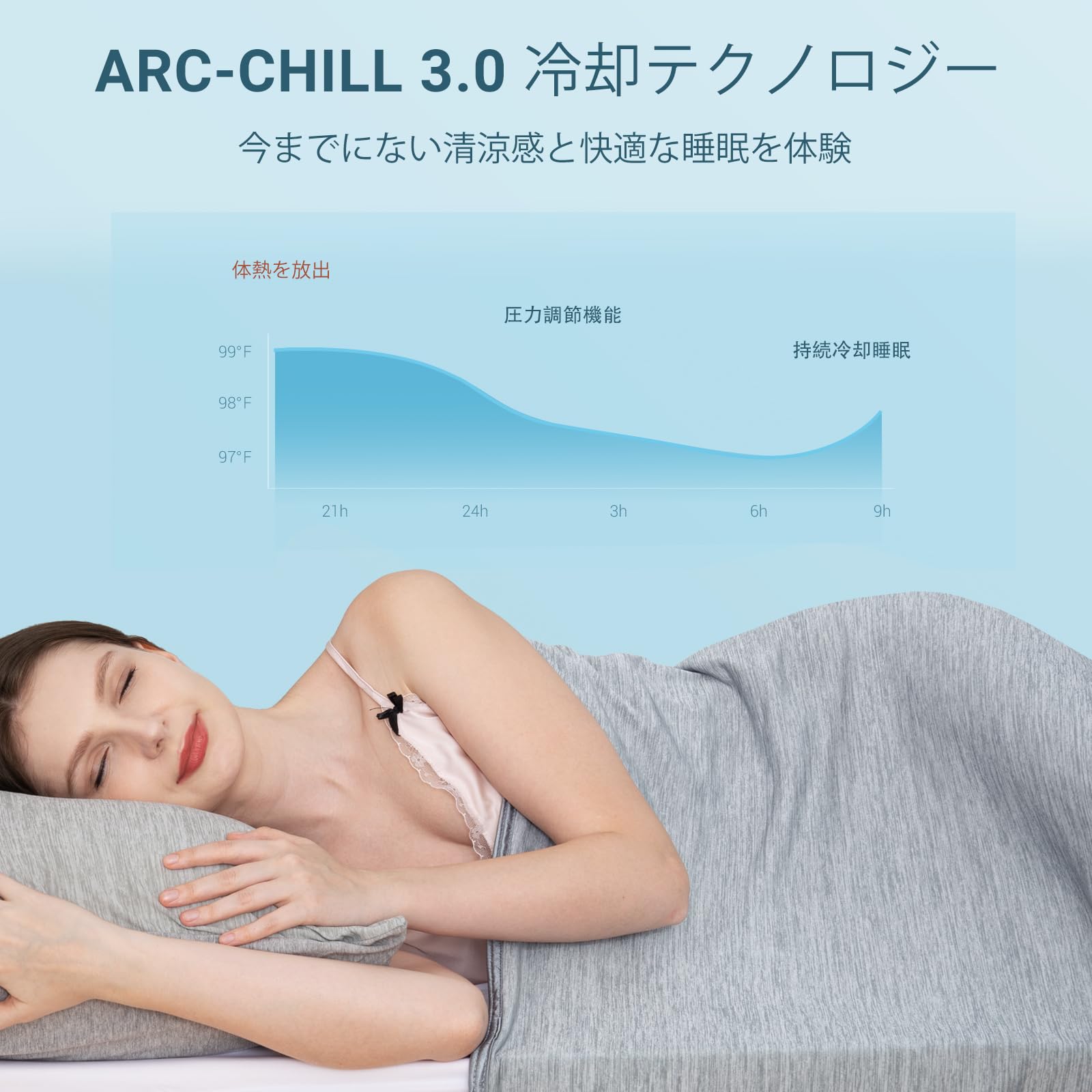 【即効冷感Q-Max>0.5、寝汗対策に大人気】 「Arc-Chill 3.0冷感タオルケット」は、体熱を瞬時に吸収して綿より12倍速く放熱!体温を4〜9?低下させるから、寝汗でお困りの方に大人気です。夏の夜もひんやり快適な睡眠を実現する、ホットスリーパー必携の冷却ブランケットです。寝苦しい夜ともおさらば!
