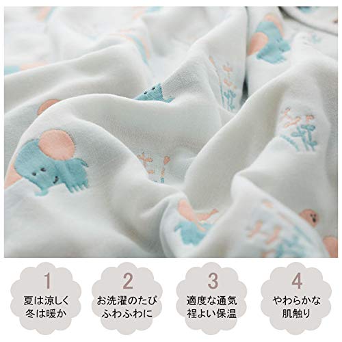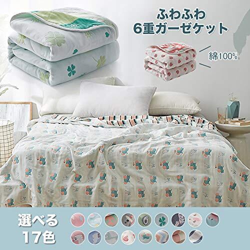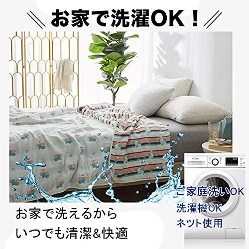 【天然素材】肌に優しい天然素材綿100%を採用しております。柔らかくて軽く、肌に優しいのでデリケート肌の赤ちゃんや敏感肌の方にも安心してお使いいただける一枚です。チクチク肌を刺して刺激することもありません。 【ガーゼケット】ふんわり柔らかな風合いながら、サラッとした感触のガーゼケットです。熟練の職人がしなやか細い糸を使用して平織り組織を6重に織り上げました。ガーゼの特徴として吸湿性・通気性がとても優れているので、水分を素早く吸収して、汗をかいてもすばやく乾いて気持ちいいです。 【オールシーズン使える】夏の必需品であるタオルケット。夏用の寝具というイメージが強いですが、実は年間通して使える優秀アイテムなんです。 【洗濯】ご家庭の洗濯機で丸洗いが可能ですので、いつも清潔にお使いいただけます。お洗濯の際は、洗濯ネットをご使用ください。また、洗濯後、形を整えてから干してください。※ご使用前には一度お洗濯をしてください。※乾燥機・塩素系漂白剤のご使用はお避け下さい。商品説