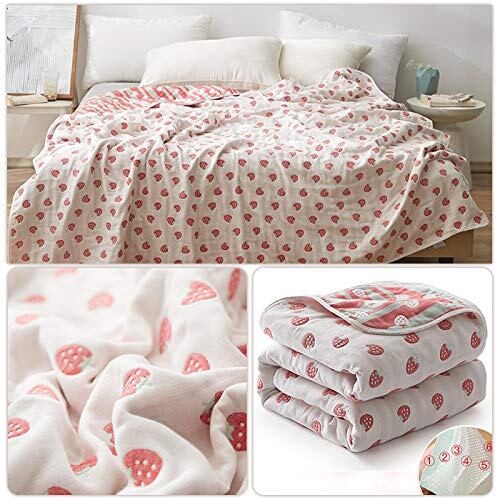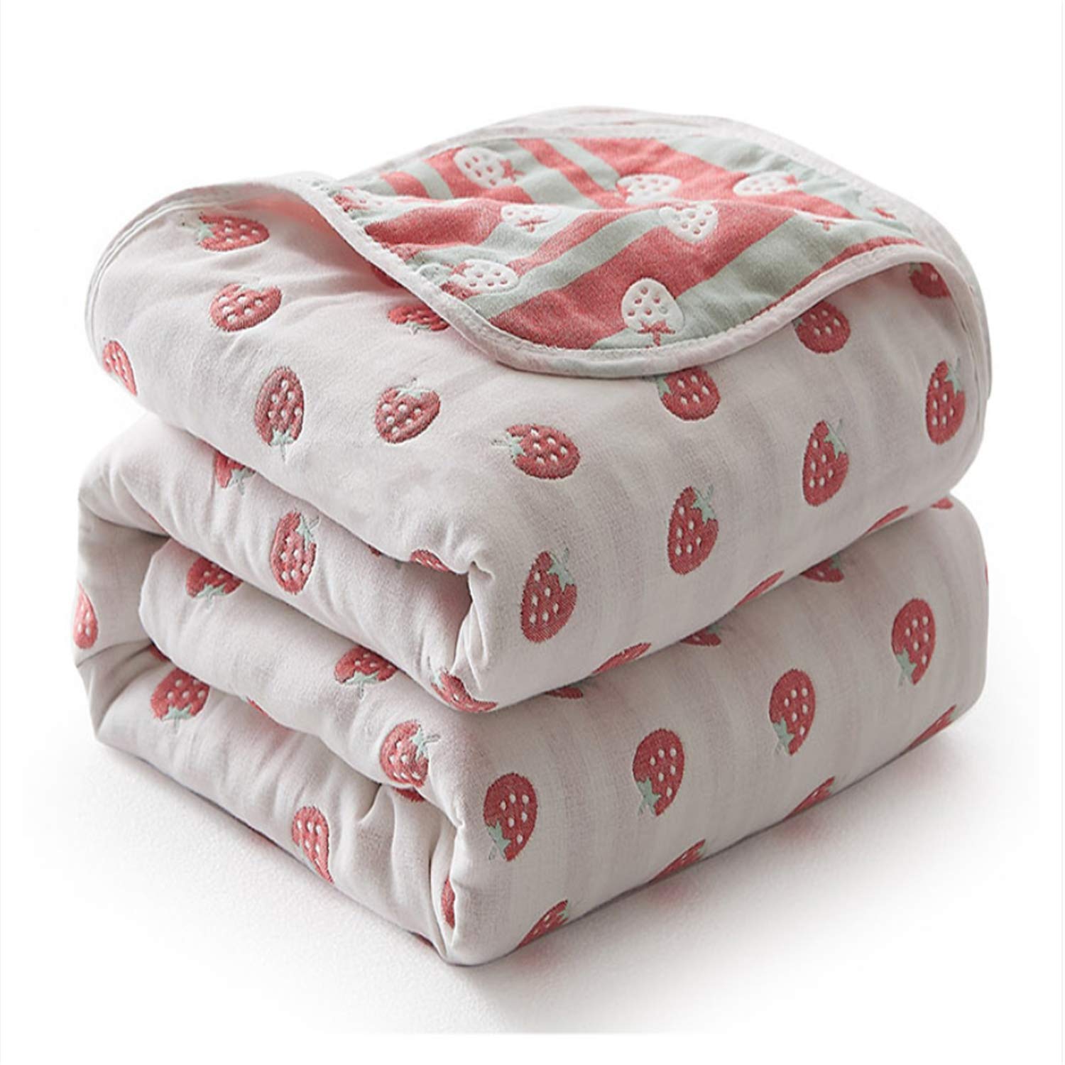 六重タオルケット 肌掛け 綿100% ガーゼケット バスタオル タオルケット ガーゼ 掛け ふわふわ 吸湿性 かわいい ケット 夏 軽量 コットン ひんやり 接触冷感 洗える シングル (苺, 90*100cm)