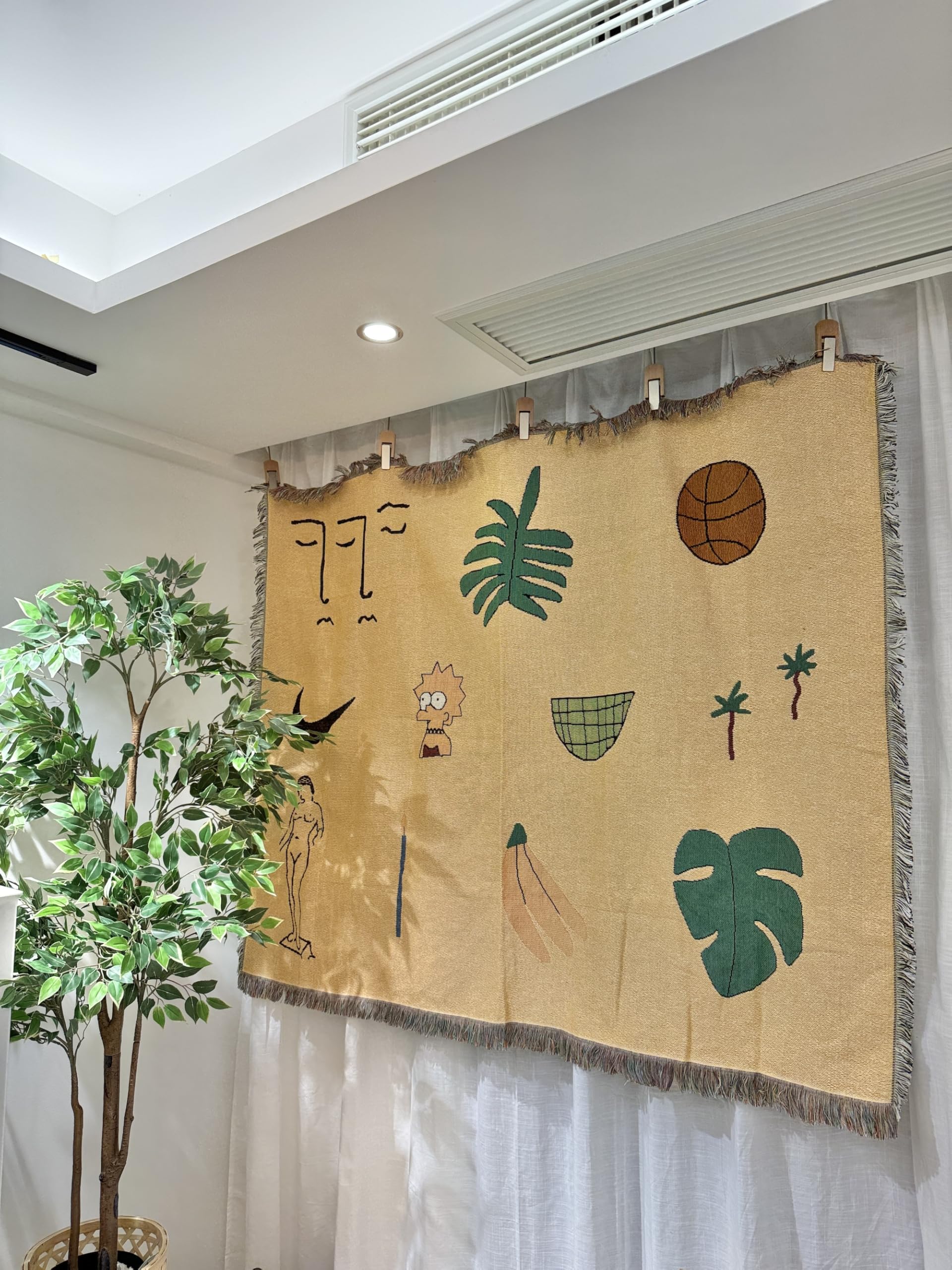赤ちゃんの絵が入っていてユニークなものが好きな方に似合うアイテムです。 絵が可愛くて子供がいる家庭にもよく似合いそうです。 写真のようにリビングラグの上にポイントで敷いてくれてもきれいです。 ファブリック製品一つでリビングの雰囲気を変えることができます:)