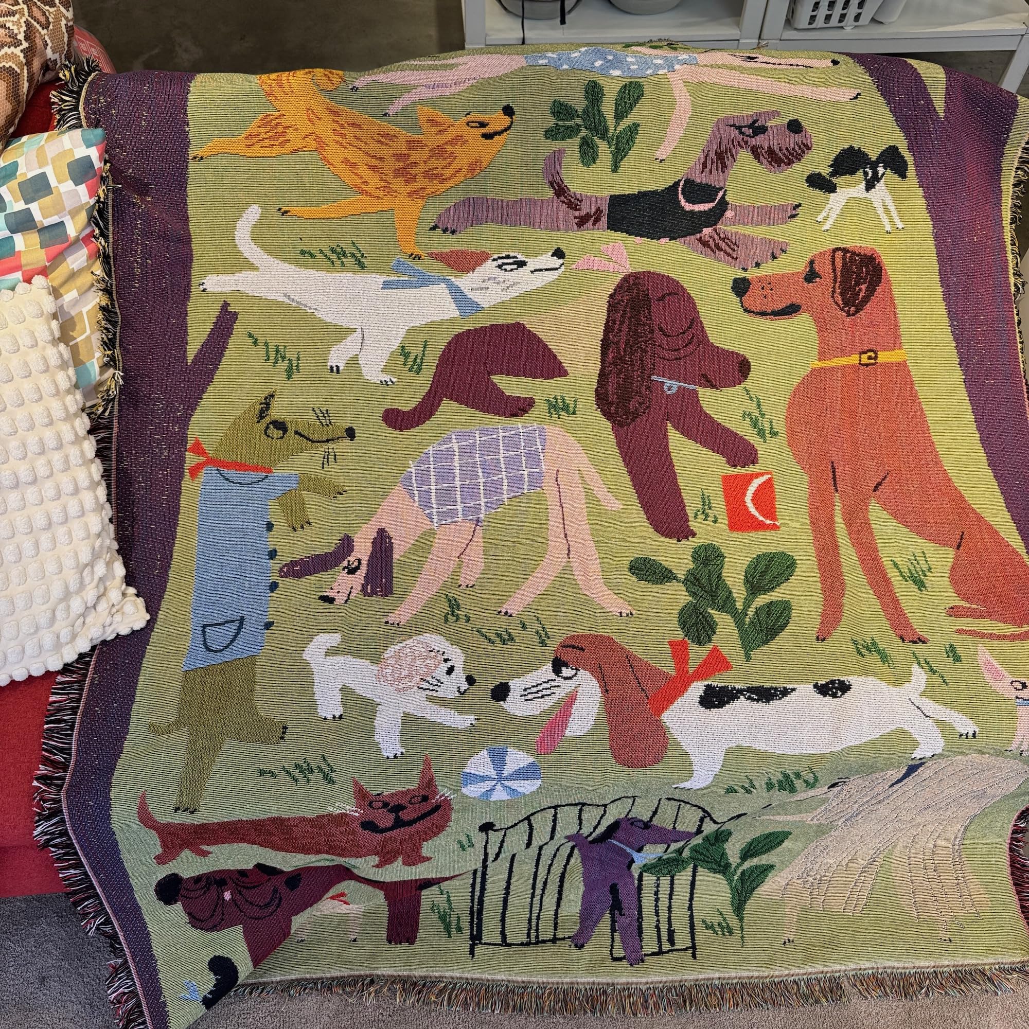 ドッグパーク 柄 可愛い おしゃれ マルチカバー ブランケット (130X160cm) このブランケットは、ドッグパークをモチーフにした可愛らしい柄が特徴的で、おしゃれで実用的なアイテムです。サイズは130cm×160cmと広々としており、愛犬と一緒にゆったりと過ごせます。