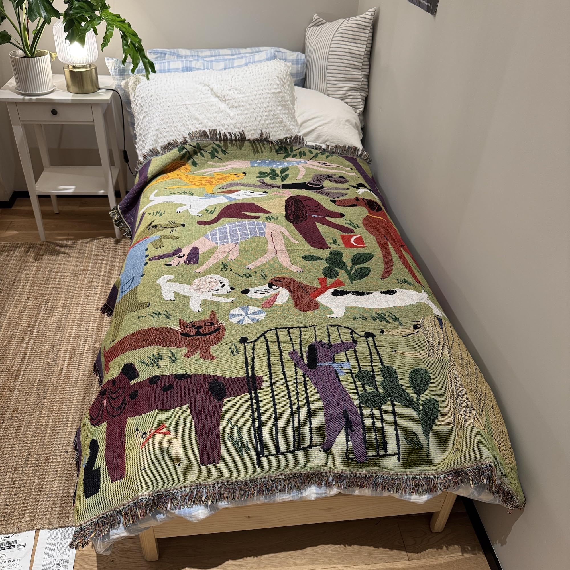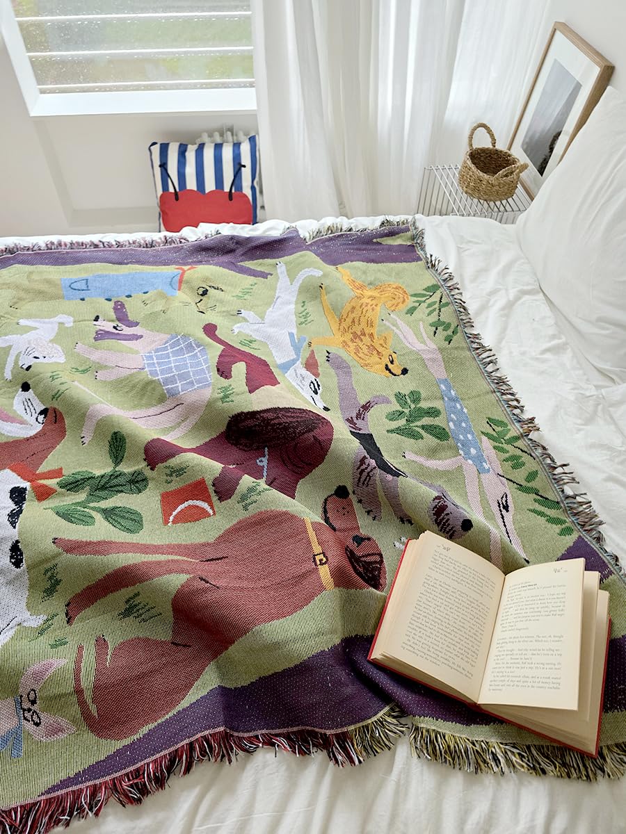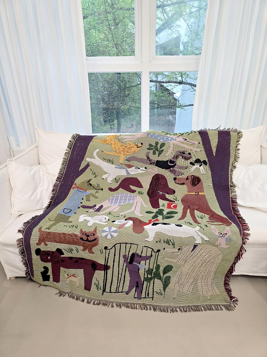 Dog Park 北欧風 犬 柄,グリーン, 韓国風のインテリア おしゃれ マルチカバー ブランケット ,ソファーカバー,洗濯可能,ベッドカバー (130X160cm)