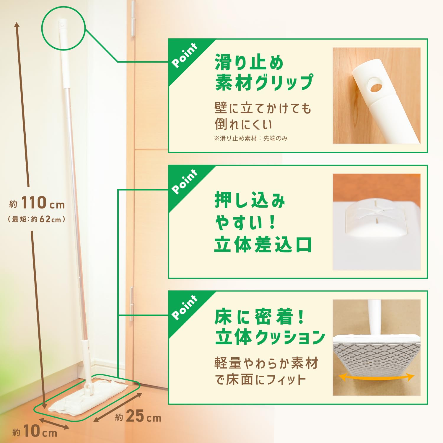 軽量・やわらか素材の立体クッションで、床に密着して汚れをとります。