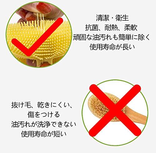 速乾抗菌無臭:素材は布やスポンジボウルの布巾が乾燥のために長い時間がかかる。そして多湿環境で細菌が繁殖される、変な臭いがあるかもしれない。 シリコン製のブラシは以上の困りはない!