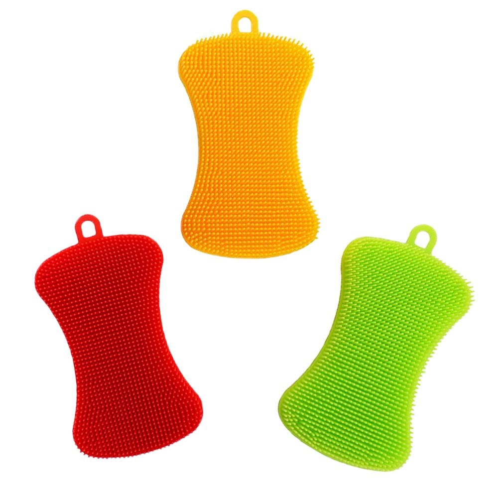 食器洗いスポンジ キッチンブラシ シリコンタワシ 柔軟 抗菌 耐熱性 油汚れ洗浄 掃除にも適用 多機能 三色(赤・緑・黄)