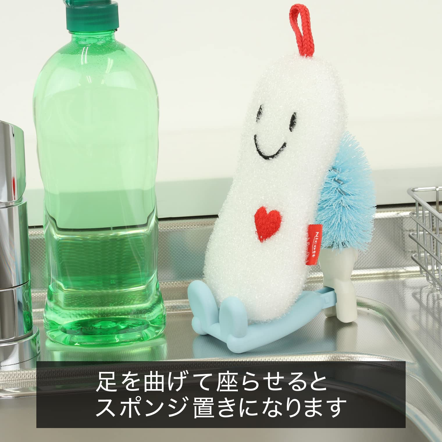 立たせたり、座らせたり、吊ったり。キッチンスタイルに合わせた形で収納可能。座らせるとスポンジ置きにもなります。