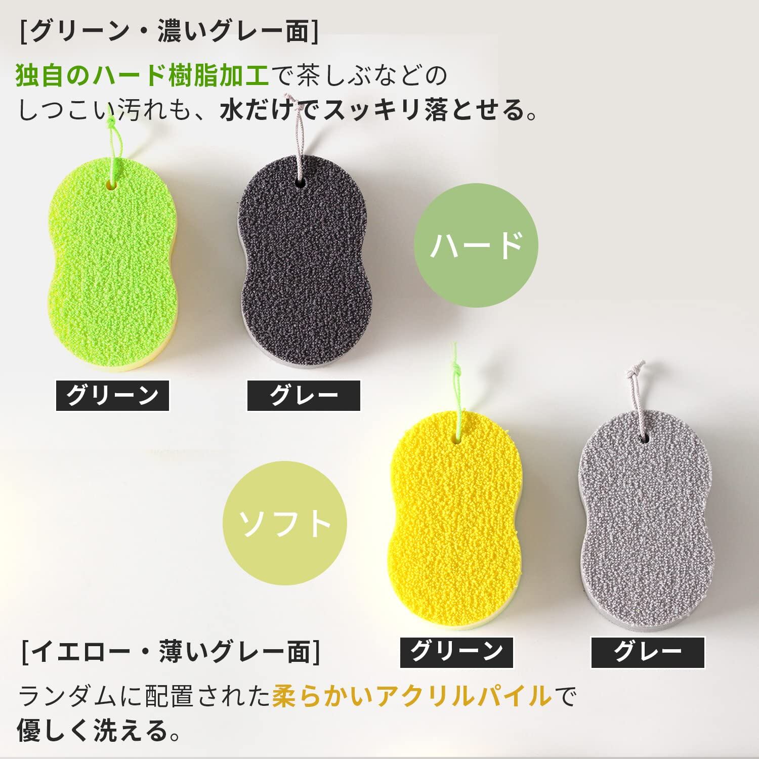 【水だけで水垢などの汚れがすっきり落ちる】バスタブや洗面台など、水周りのお掃除に。洗剤なしでも汚れをかき出すマーナ独自のハード樹脂加工面と、ソフトなパイル面。両面で加工を変えているので、洗う場所によって使い分けができます。
