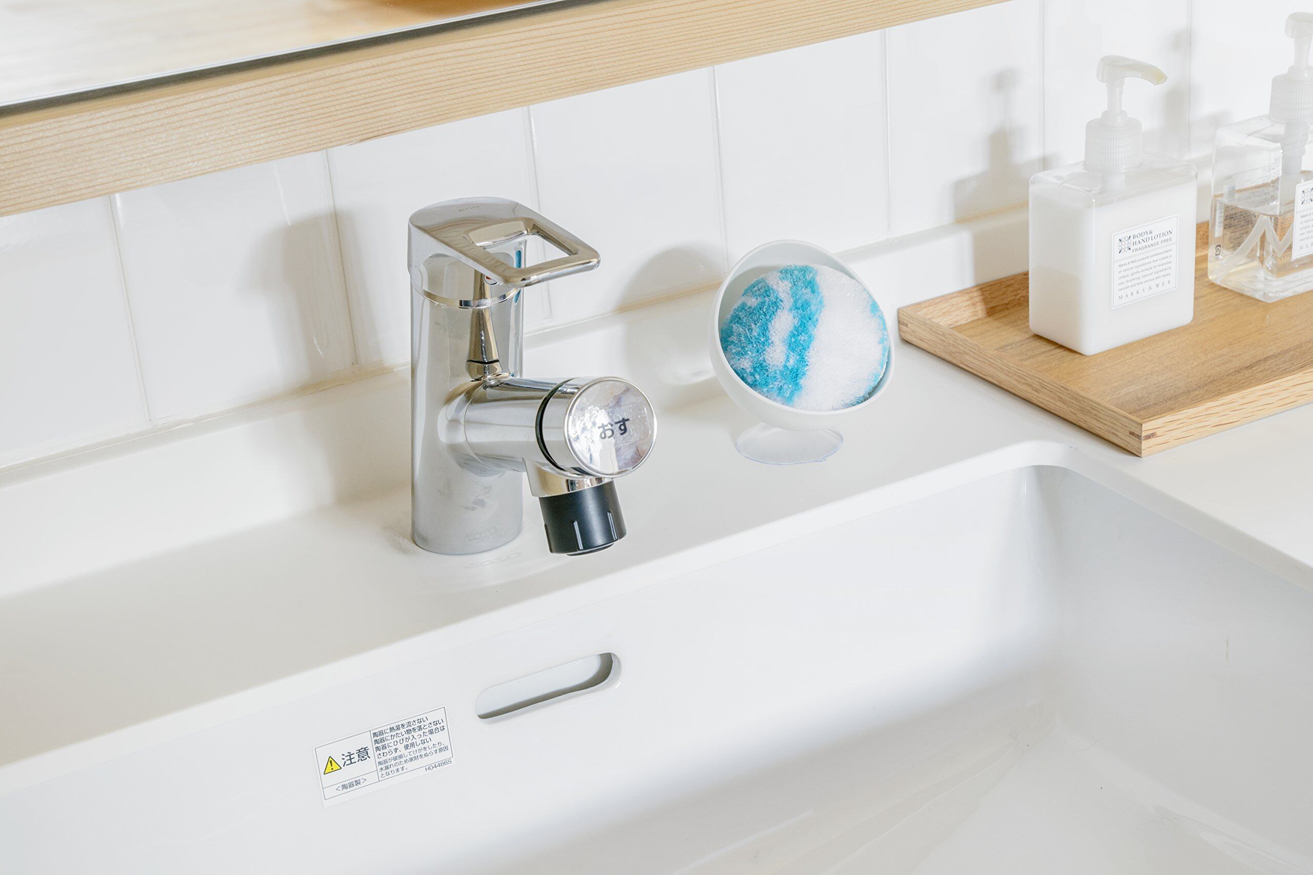 【スポンジ】必ず水またはぬるま湯で清掃面を濡らしてからご使用ください。ガンコな汚れにはバス用洗剤を少量含ませ使用するとより効果的です。【ケース】ケース底部に付属の吸盤を取り付けることができます。光沢のある平滑面にくっつけることができます。吸盤を取り外す時は吸盤についている突起を持ち上げてください。