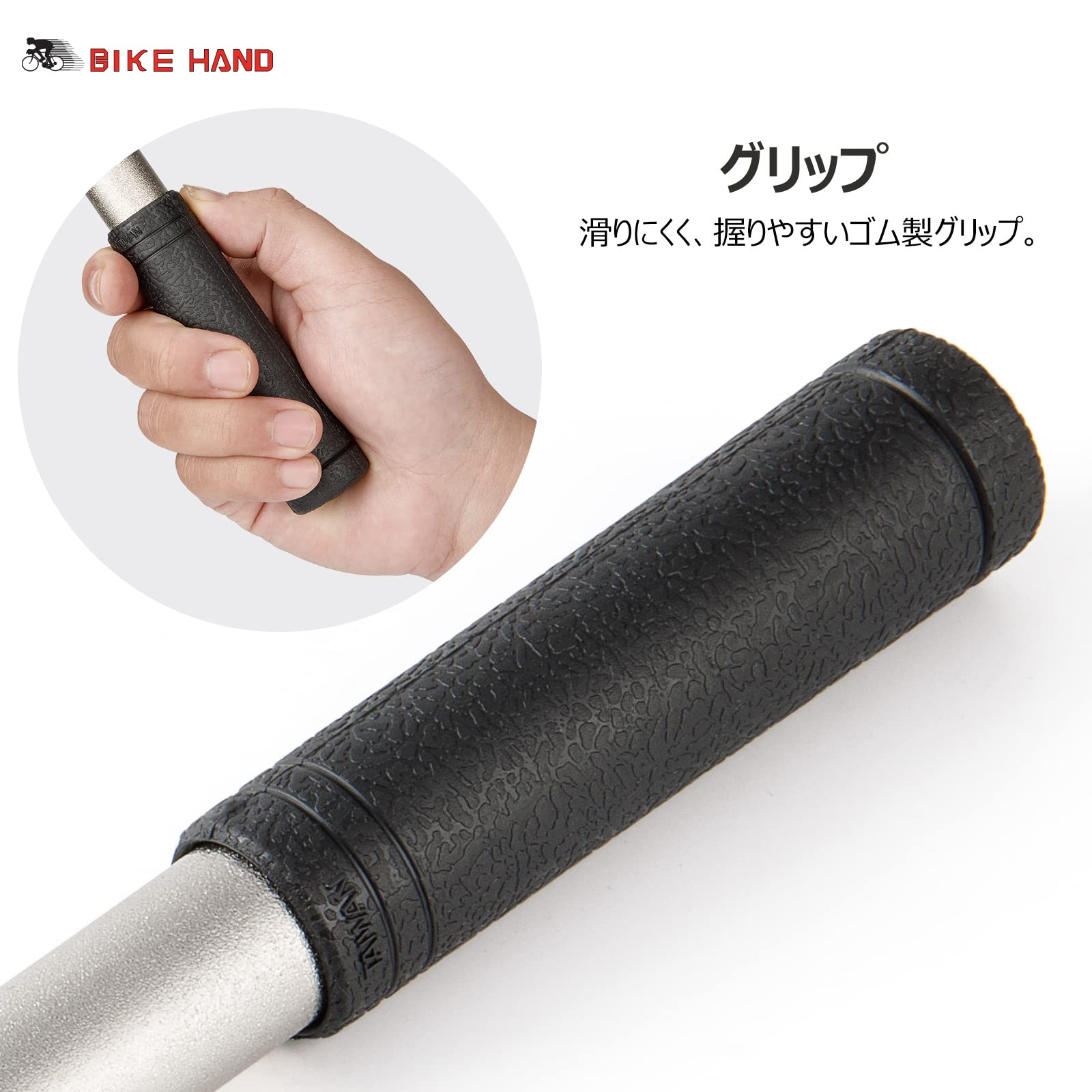 【グリップ】表面がパターン加工されたゴム製ハンドルが優れたグリップ感を提出します。