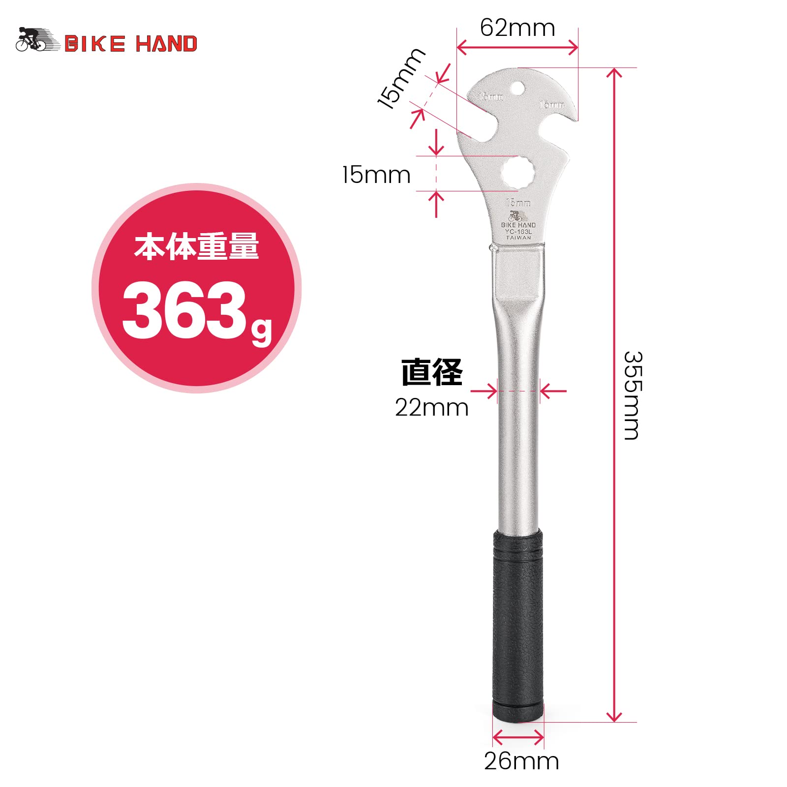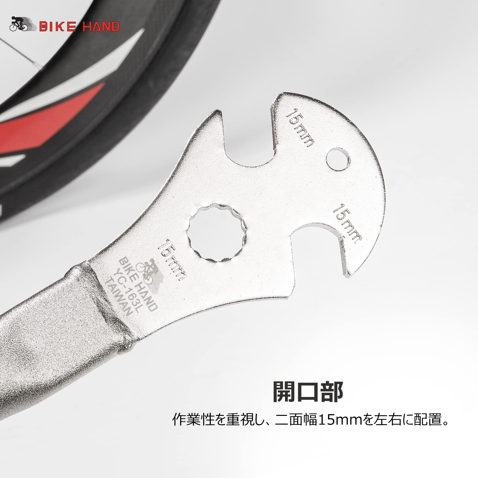 BIKE HAND 自転車 ペダルレンチ 高トルク 15mm対応 プロフェッショナル 工具(YC-163L)