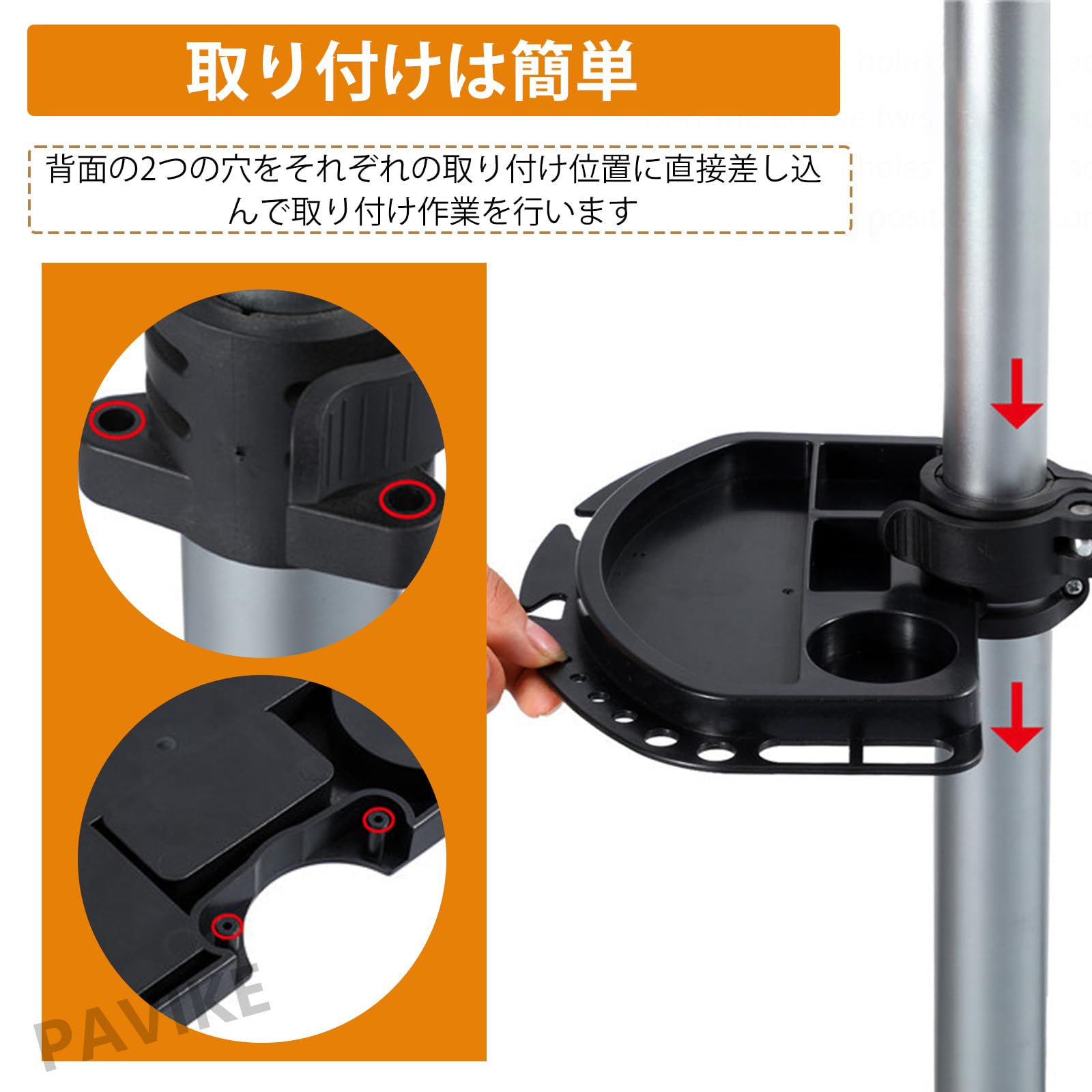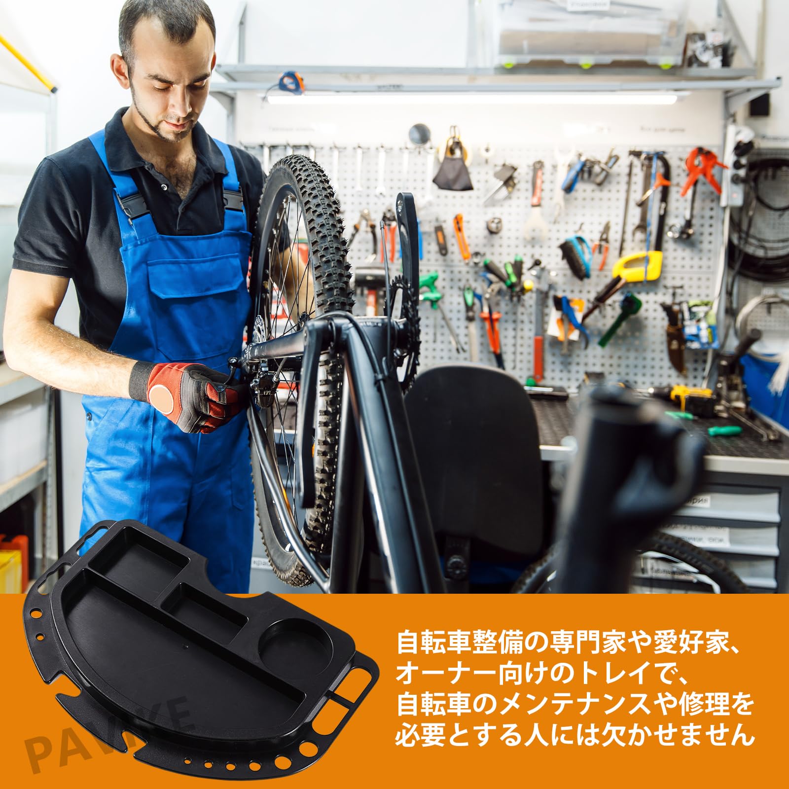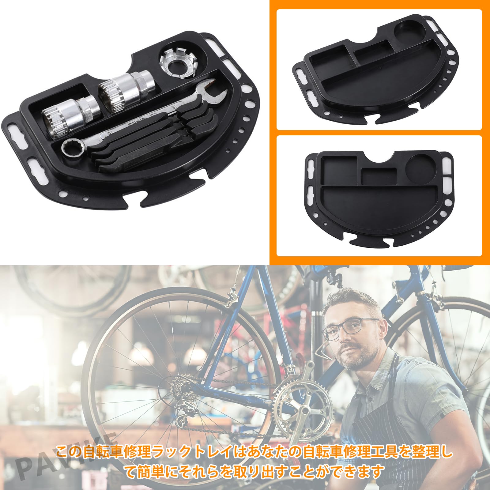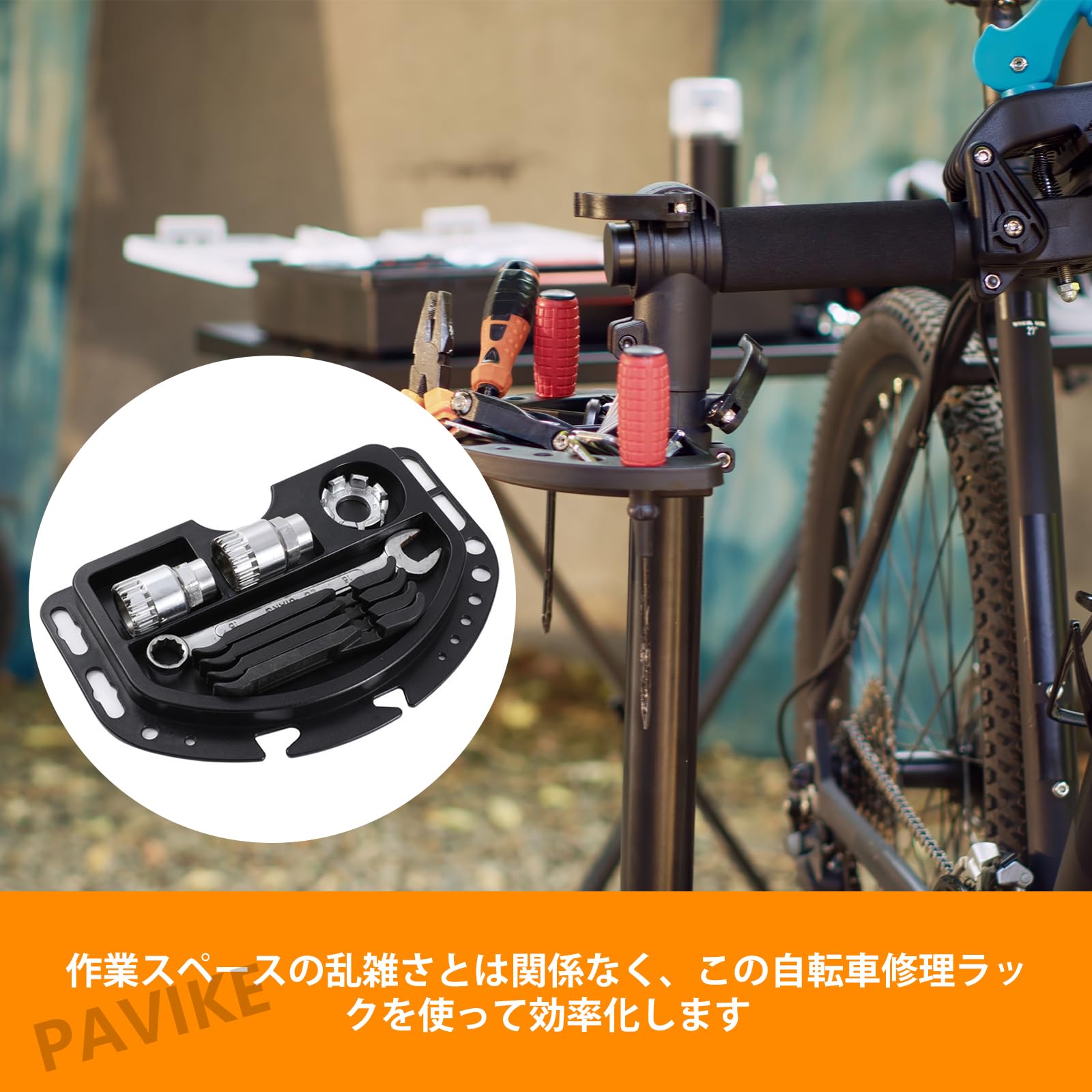 修理架専用収納トレイ:自転車修理スタンド専用ツールトレイで、メンテナンス時の工具・小部品を見やすく取りやすく整然収納し、作業台の乱雑を防ぎ修理効率を飛躍的に高めます。