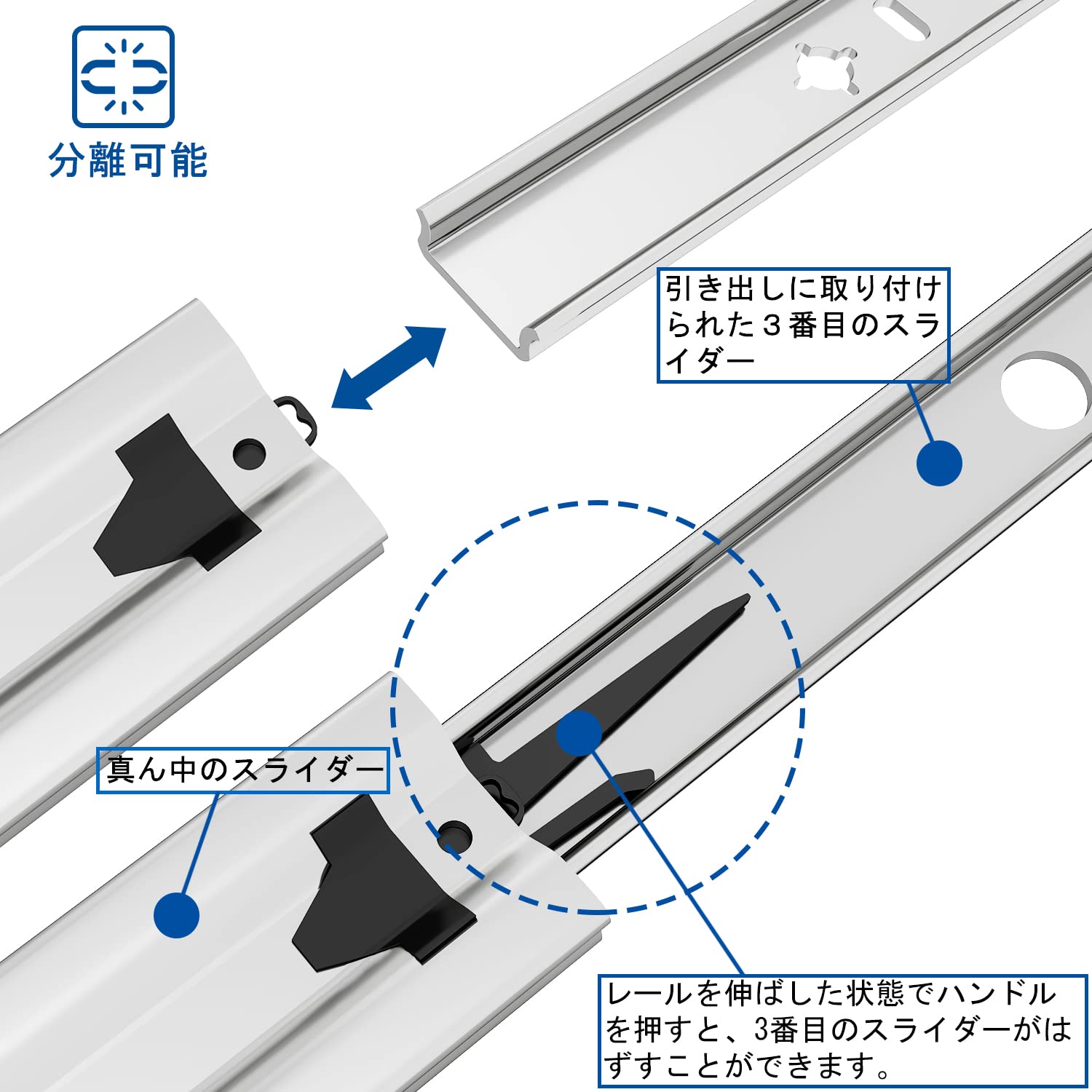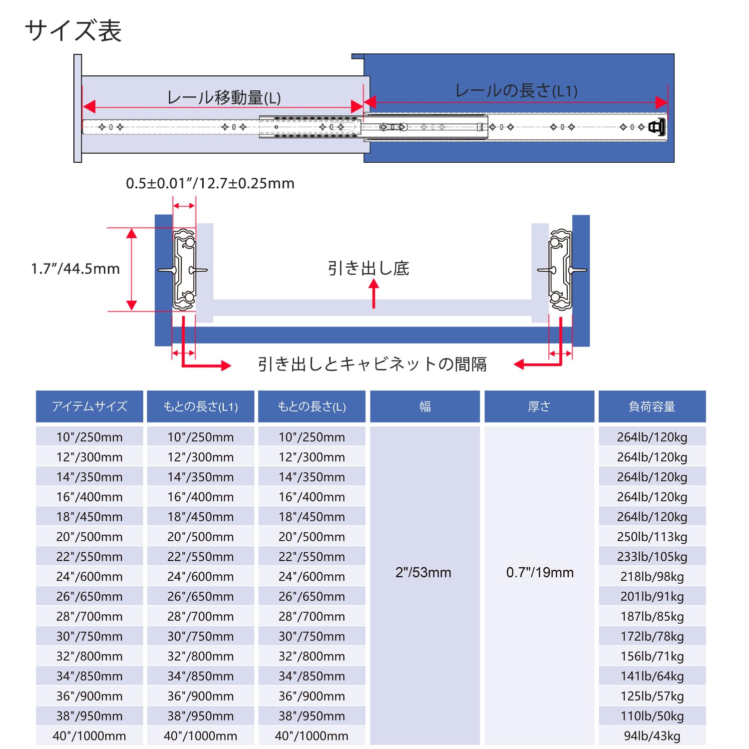 驚異の120kgペア耐荷重: プロ級の強度を誇り、1ペアで最大120kgの重量を支えます。重い工具や部品の収納に最適です。ご注意:レール長さが長くなるほど最大耐荷重は低下します。適切な長さを選択ください。