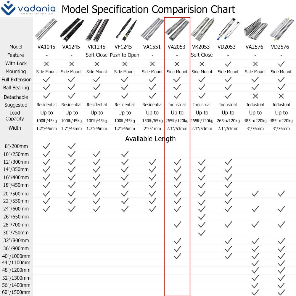 VADANIA 重量用スライドレール 350mm Heavy Duty引き出しスライド 最大耐荷重120KG VA2053 かんぜんな展開ボール 左右1セット