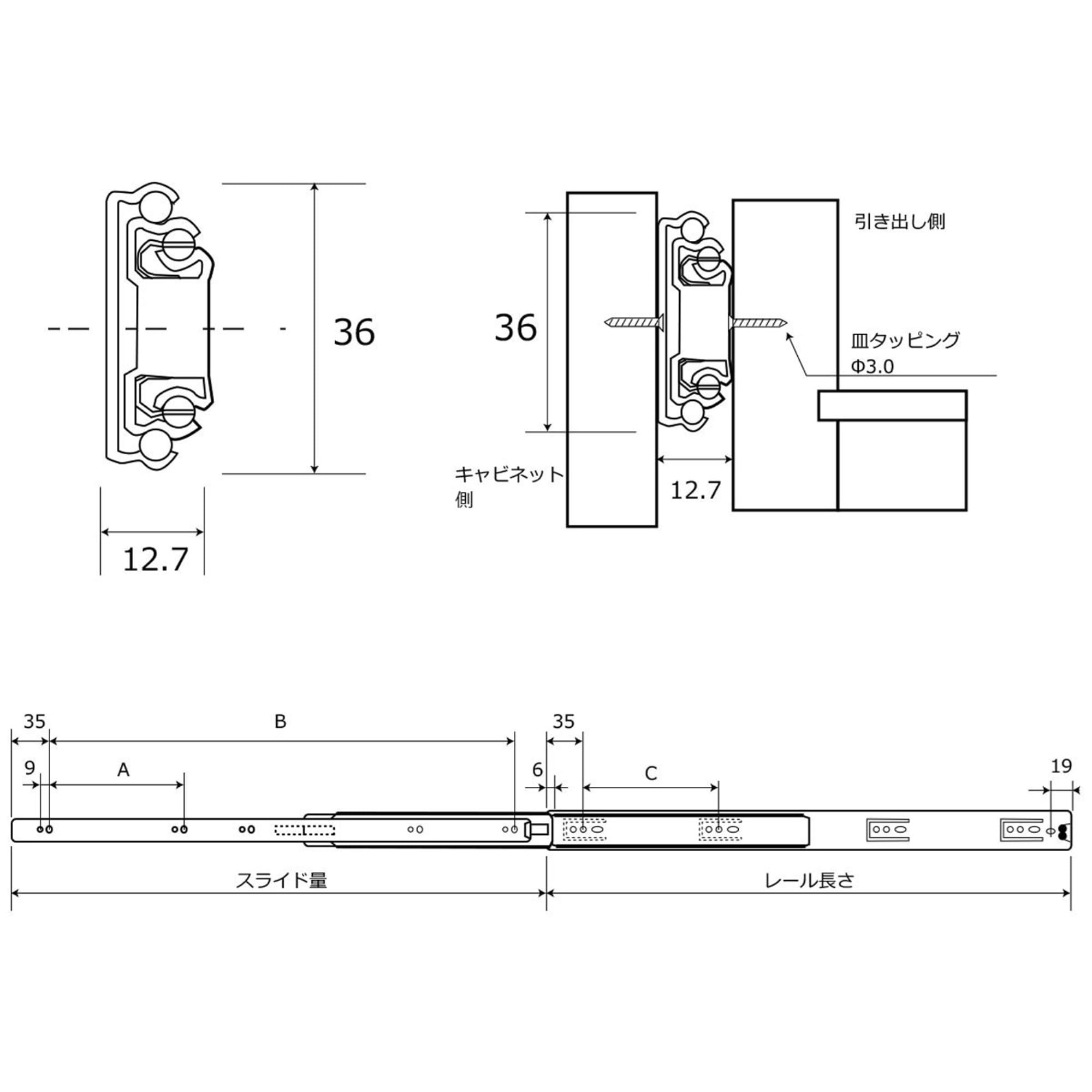 注意:引き出しの長さと同じ長さのレールを選んでください。