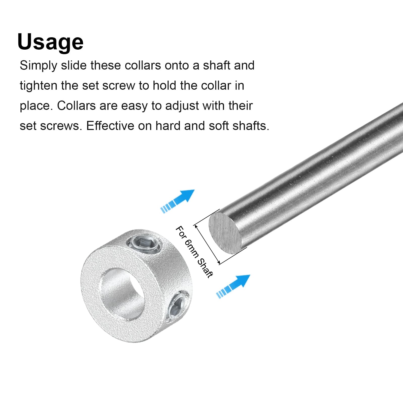 【特価】uxcell 6mm軸用スプリットシャフトカラーセット 2個のクランピングカラー 外径12mm 厚さ6mm M4セットスクリューとレンチ付きのアルミニウム合金クランプカラー | GIGATERA