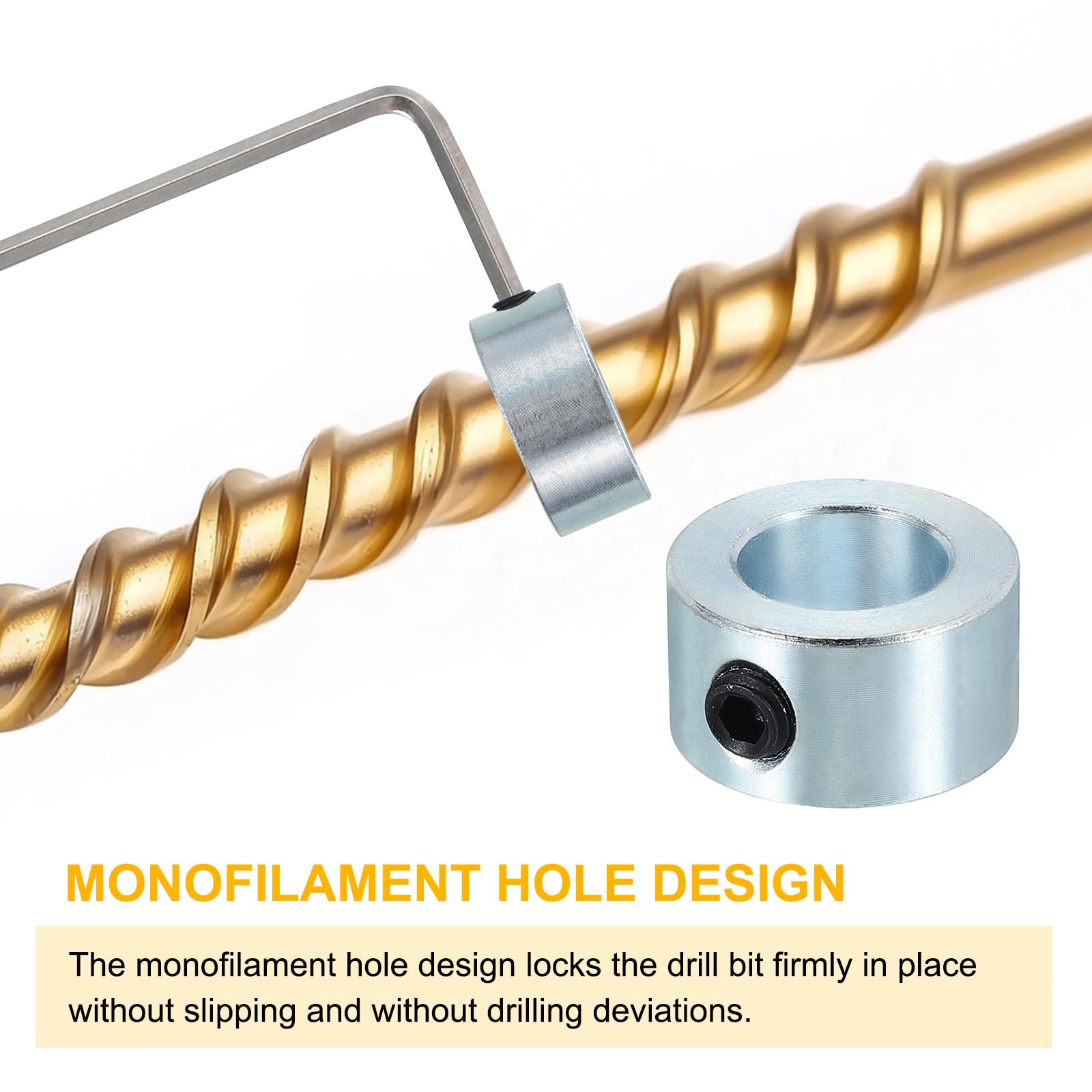 シングルワイヤホール設計 - 丸穴ロックカラークランプはストッパーとしてよく使用されます。シングルワイヤホール設計はドリルビットをしっかりとロックでき、ねじの滑りがなく、シャフトやパイプをそんしょうすることなくシャフトに沿って調整できます。