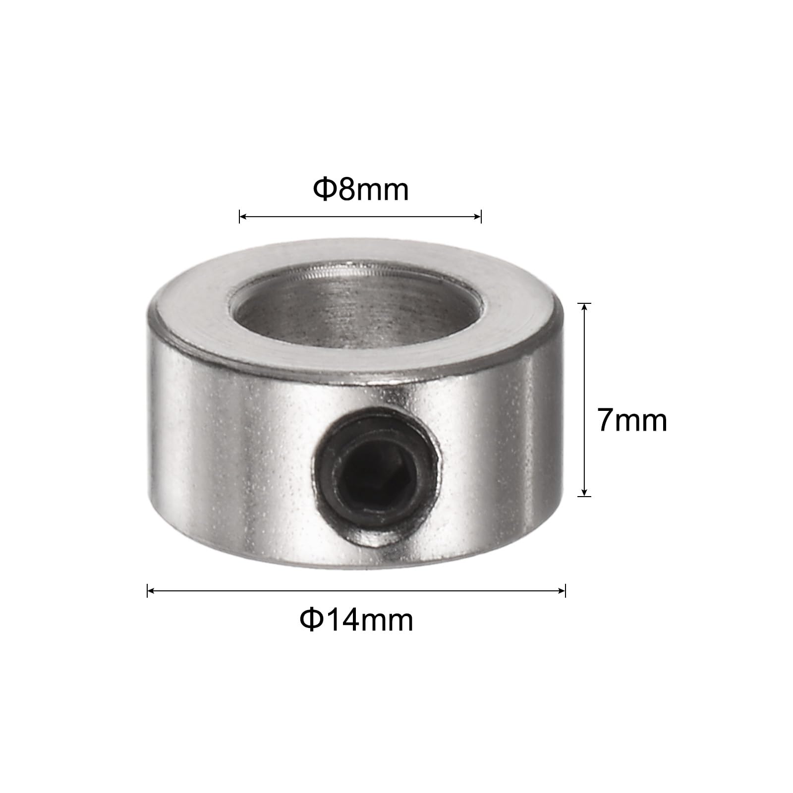 サイズ - 8mmシャフトカラー、セットスクリュー付き、14mm外径、7mm厚さ。