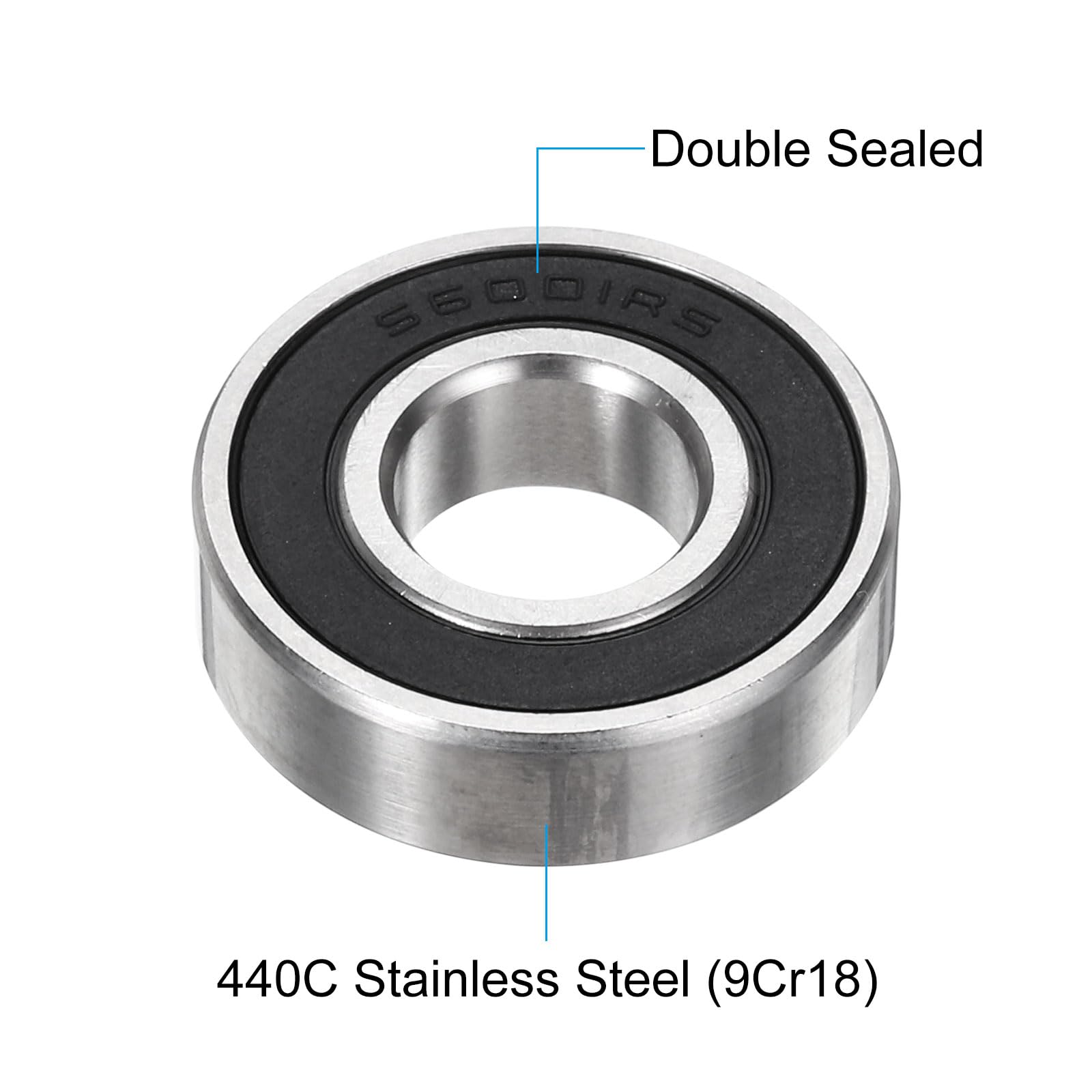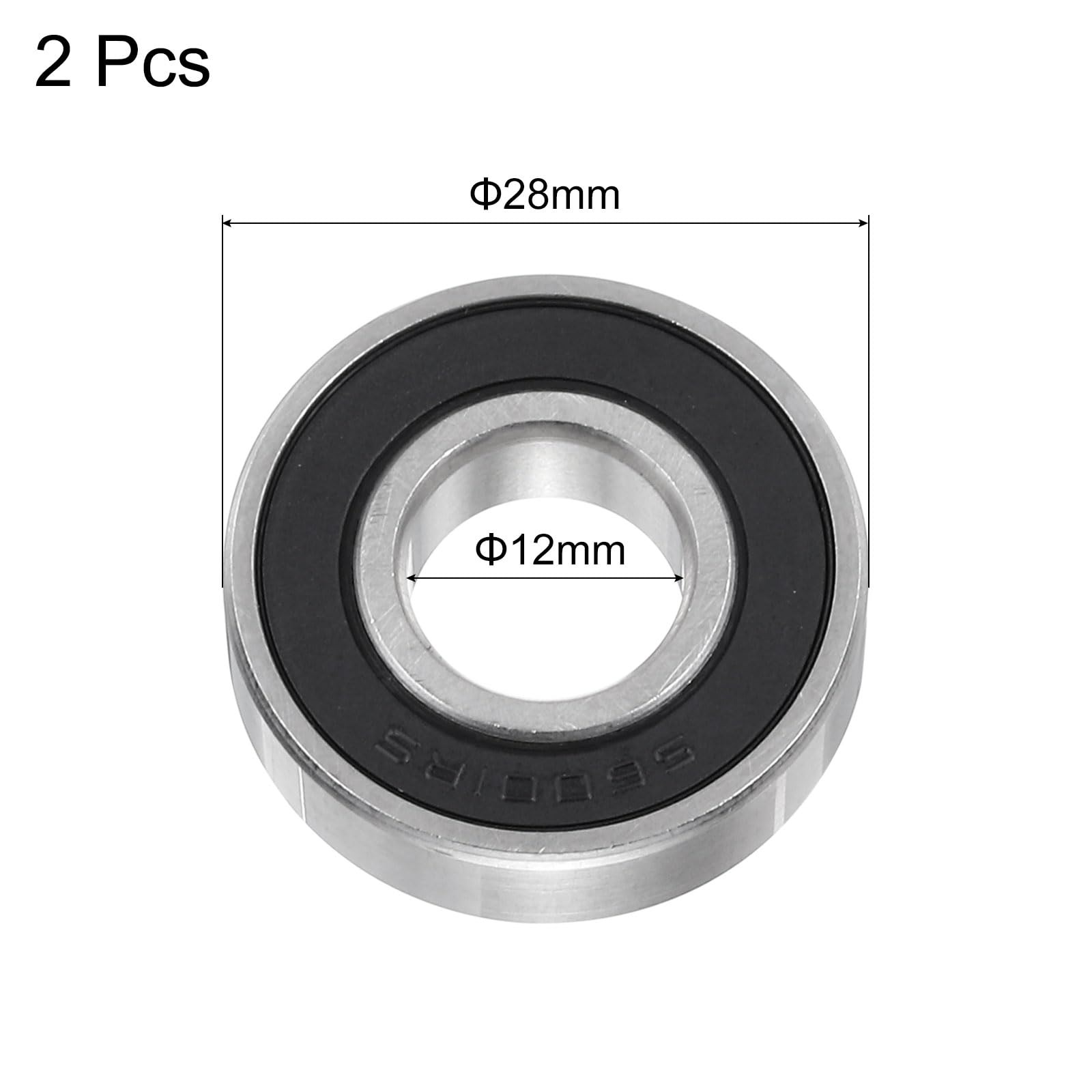 uxcell 2個 S6001-2RS ディープグルーブボールベアリング 12mm x 28mm x 8mm ダブルシールド 440Cステンレス鋼(AB EC3)
