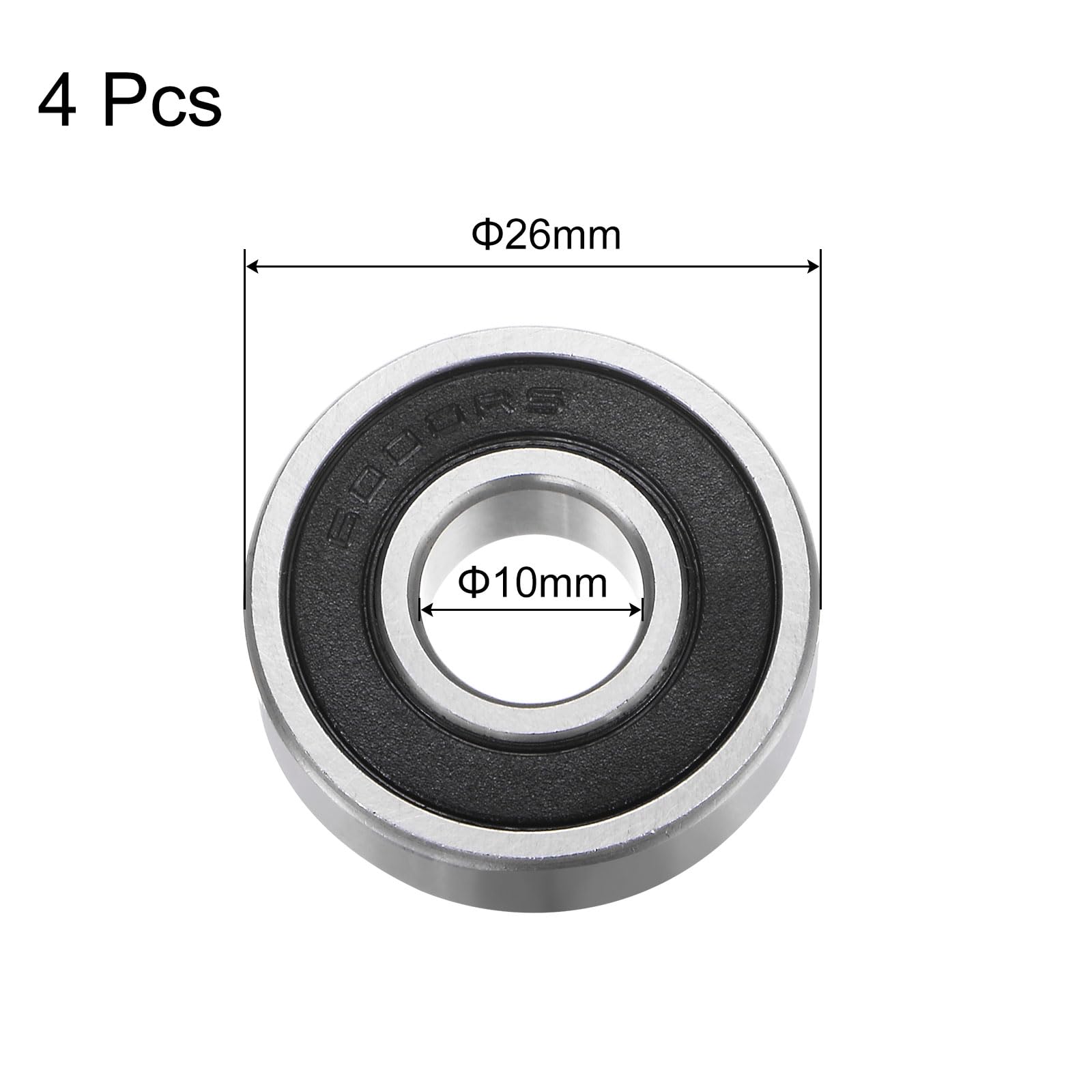uxcell 6000-2RSディープグルーブボールベアリング 10mm内径 26mm外径 8mm厚 クロム鋼 A BEC3精度 Z3ノイズレベル 4個セット
