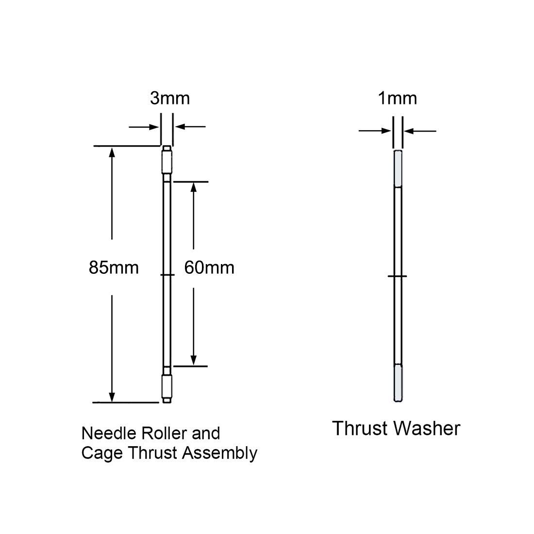uxcell AXK6085スラスト針状ころ軸受 ワッシャー付き 60mmボア 85mm外径 3 mm幅 2個
