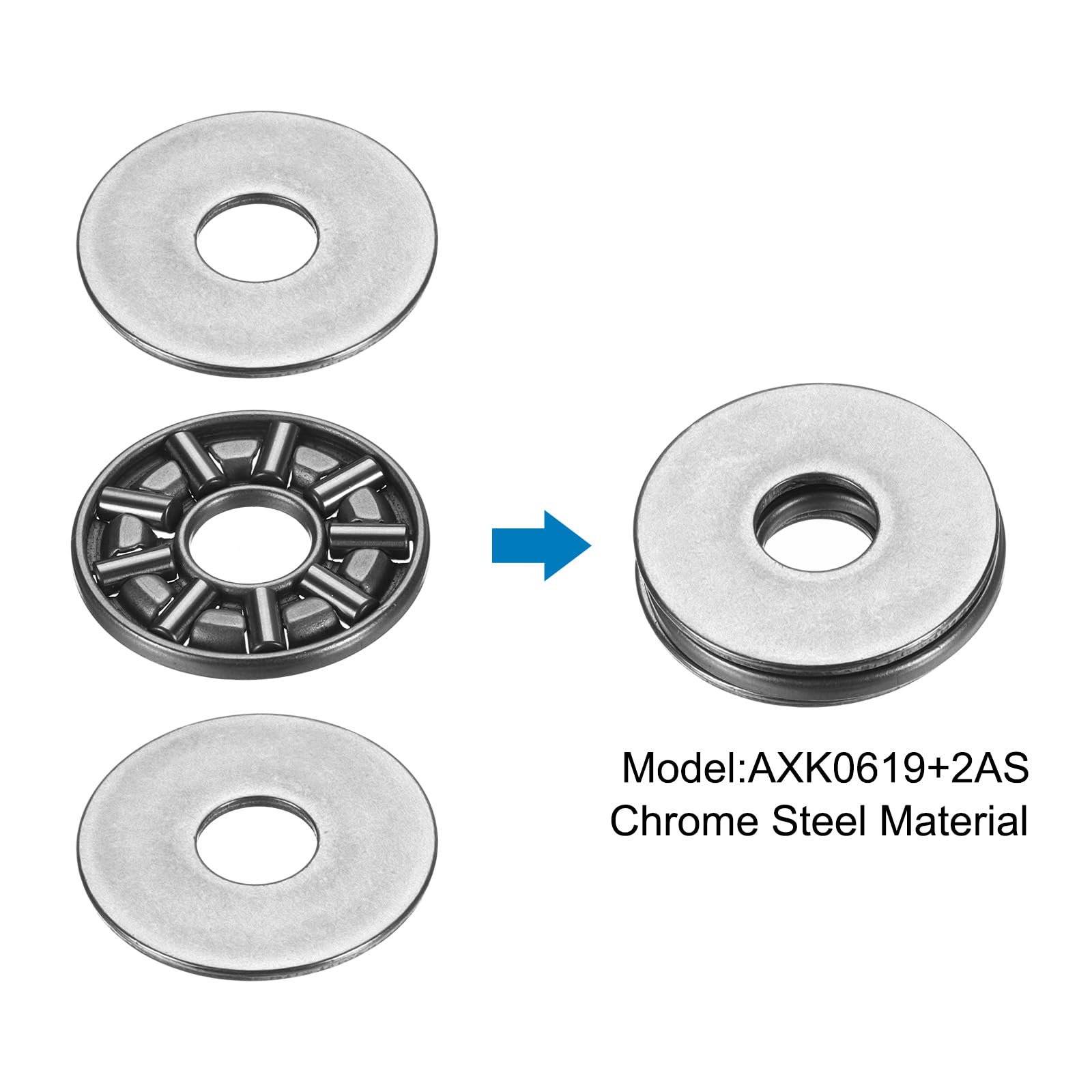 【セール】uxcell 6 セット AXK0619+2AS スラストニードルローラーベアリングとワッシャー 6x19x4mm クロム鋼ニードルローラーベアリング P5 (a beC 5)