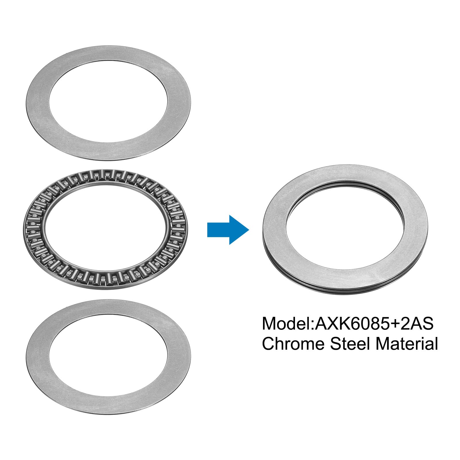 uxcell 4セットAXK6085+2ASスラストニードルローラーベアリングとワッシャー 60x85x5mmクロム鋼ニードルローラーベアリング P5(a beC 5)