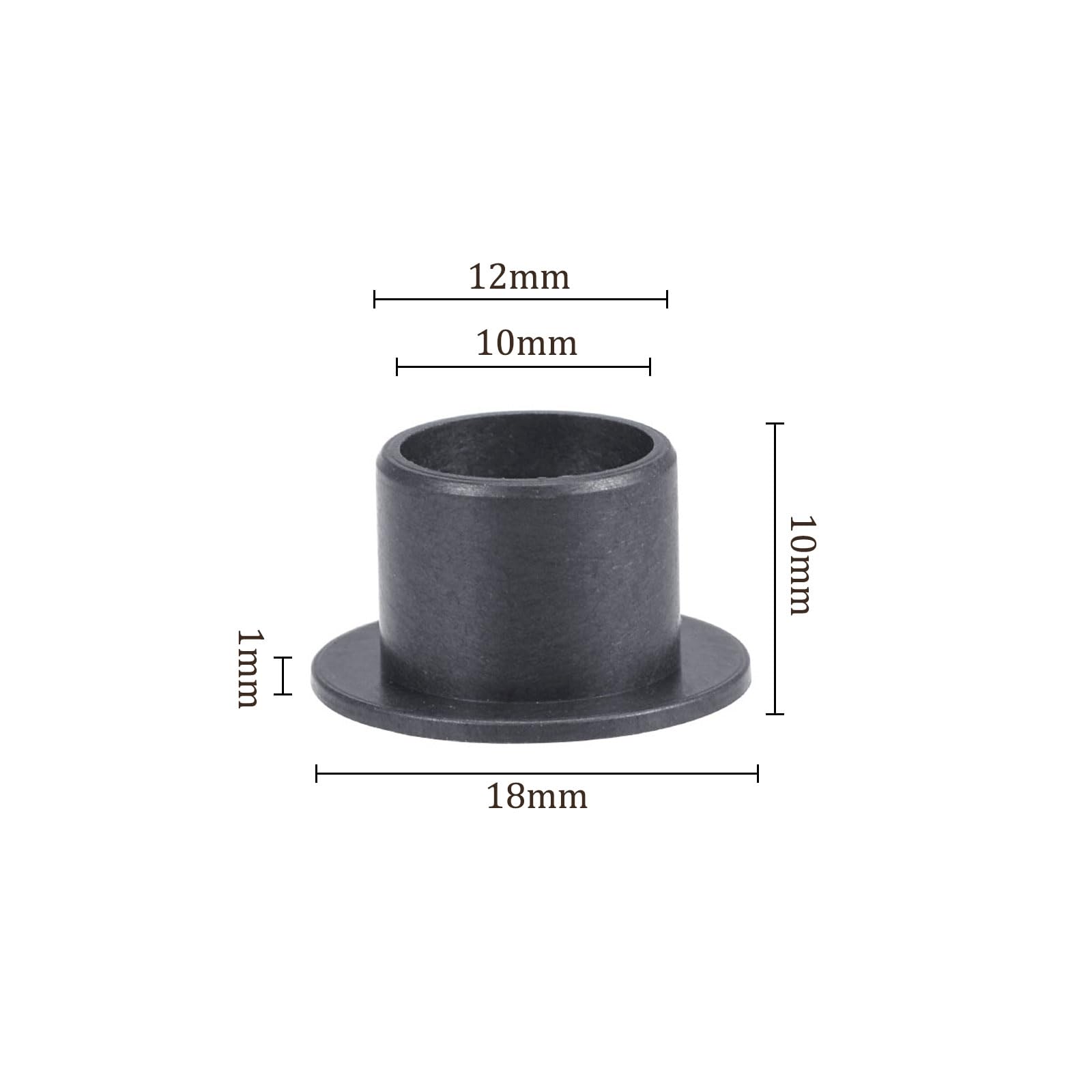 2個 フランジ付きスリーブベアリング 10 mm x 12 mm x 10 mm POM オイルレスブッシュ 設備機械用 ブラック