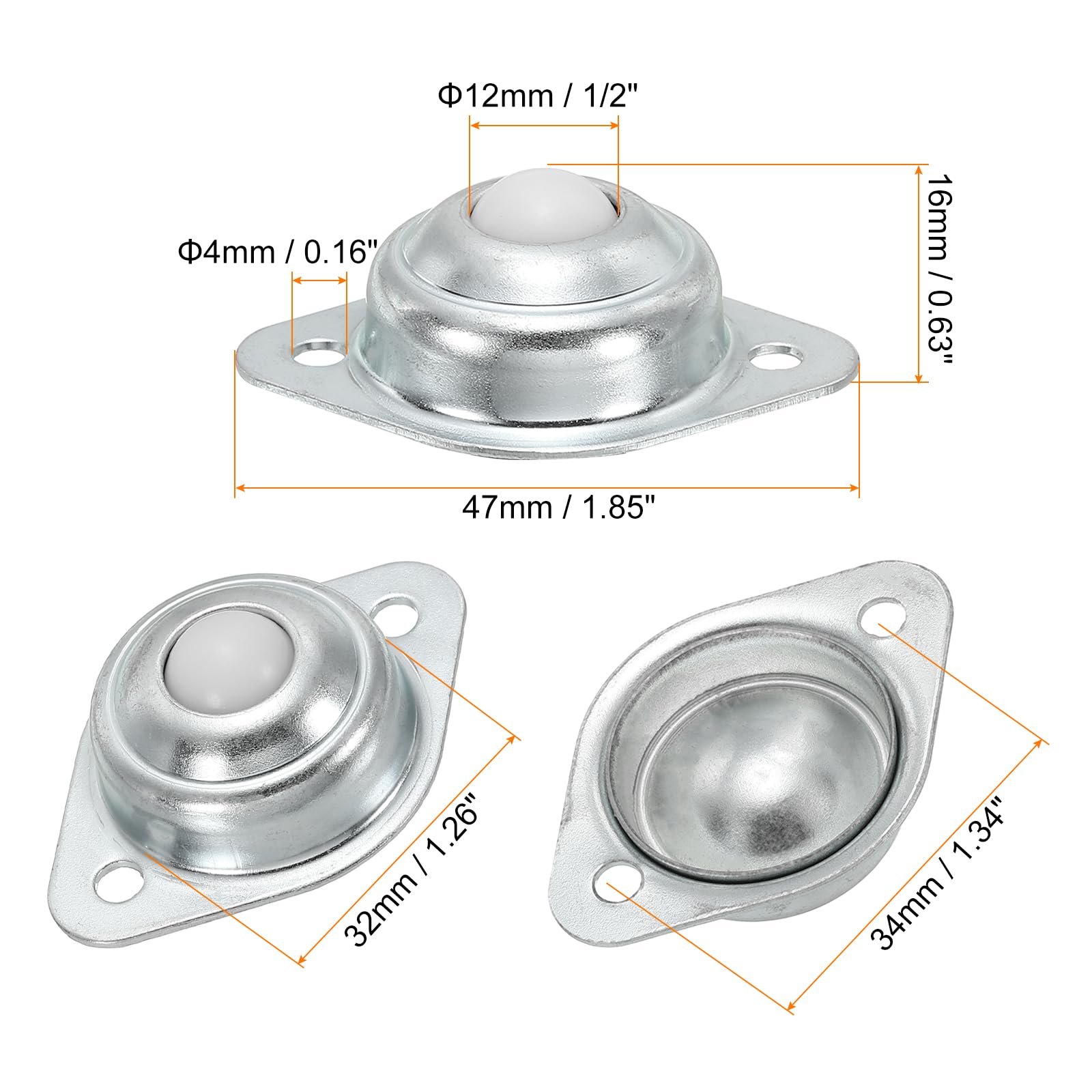 ボール直径:12mm; 取付穴中心距離:34mm; 全体サイズ:47x32x16mm(LxWxH); パッケージコンテンツ:8 x ローラーボール転送ベアリング