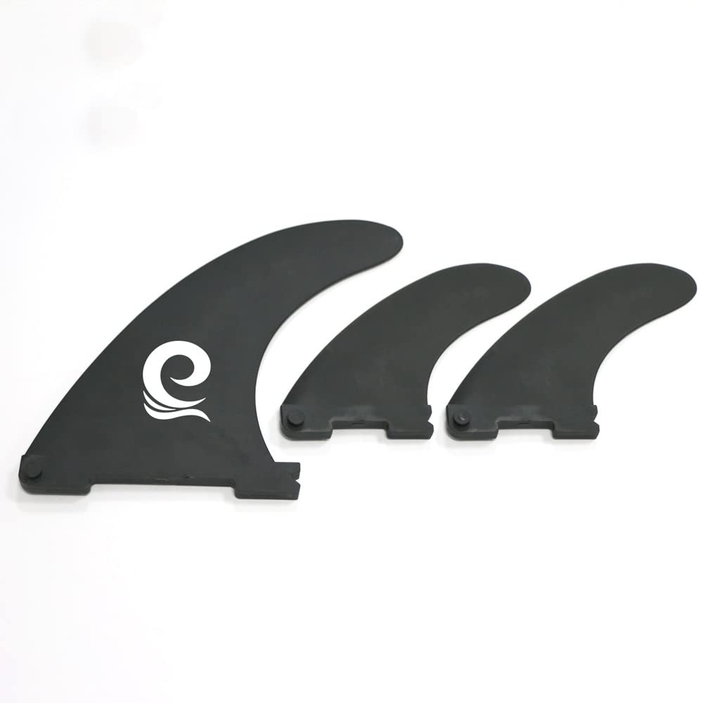サイズ:センターフィン 15.7×21.2cm ,サイドフィン 8.9 x 13.3cm,ブラックが主体。主にインフレータブルパドルボードに使用されます。