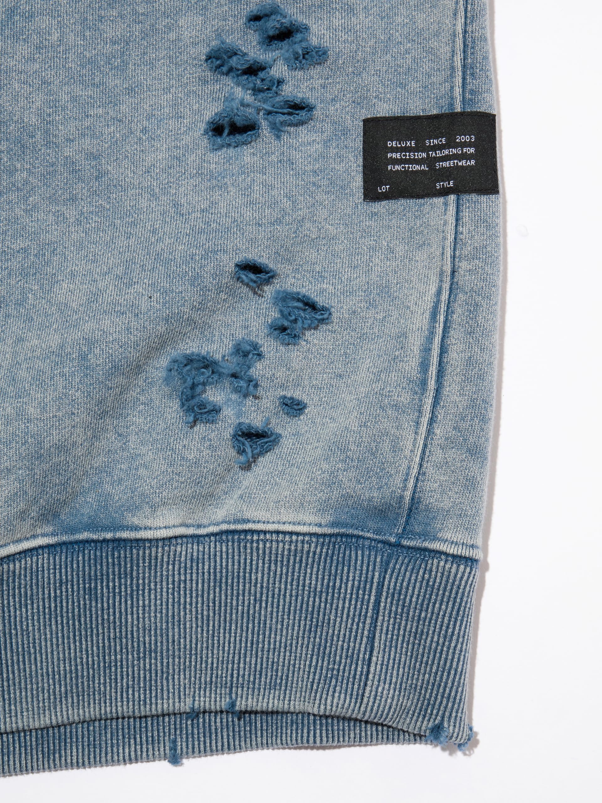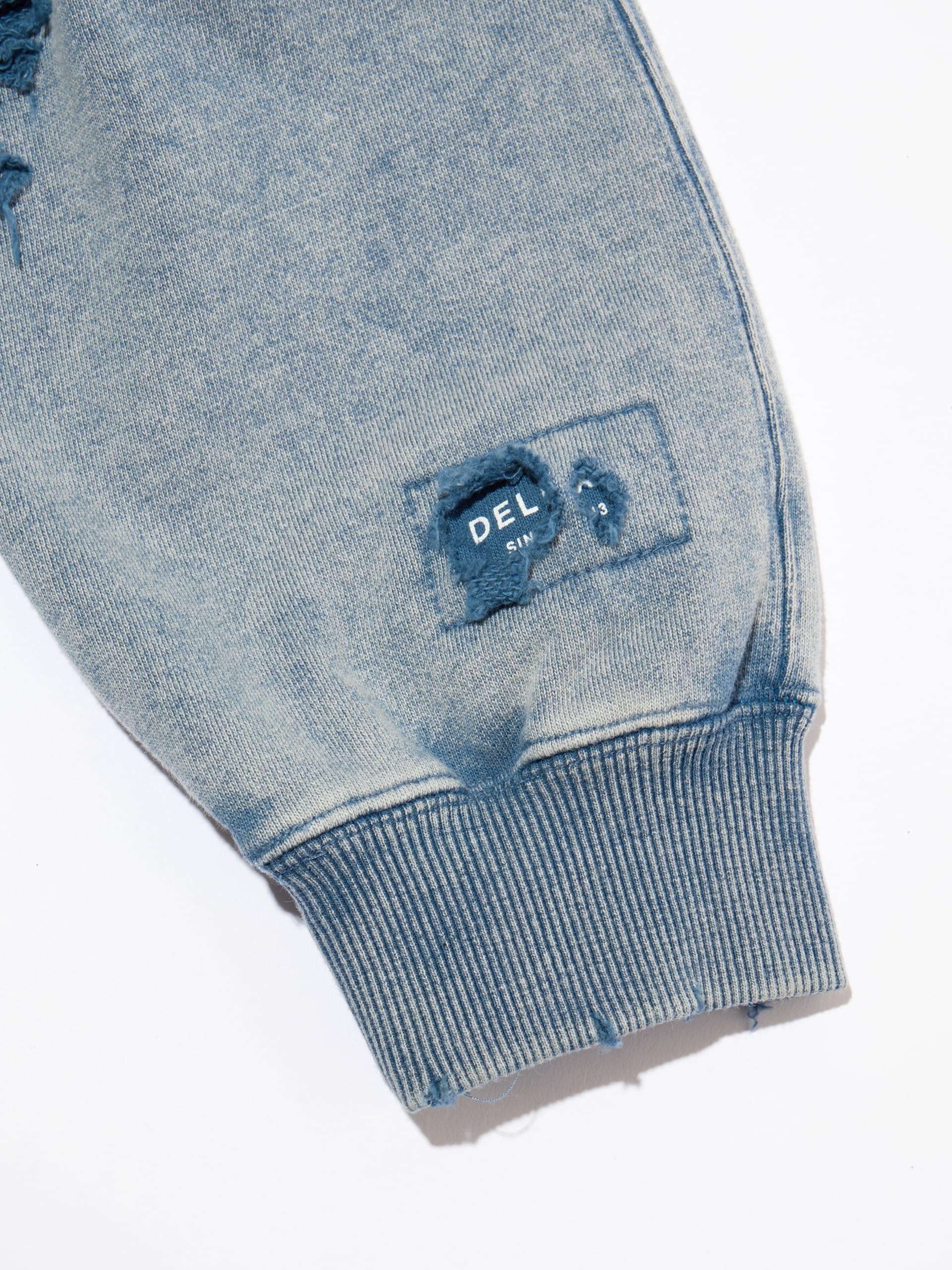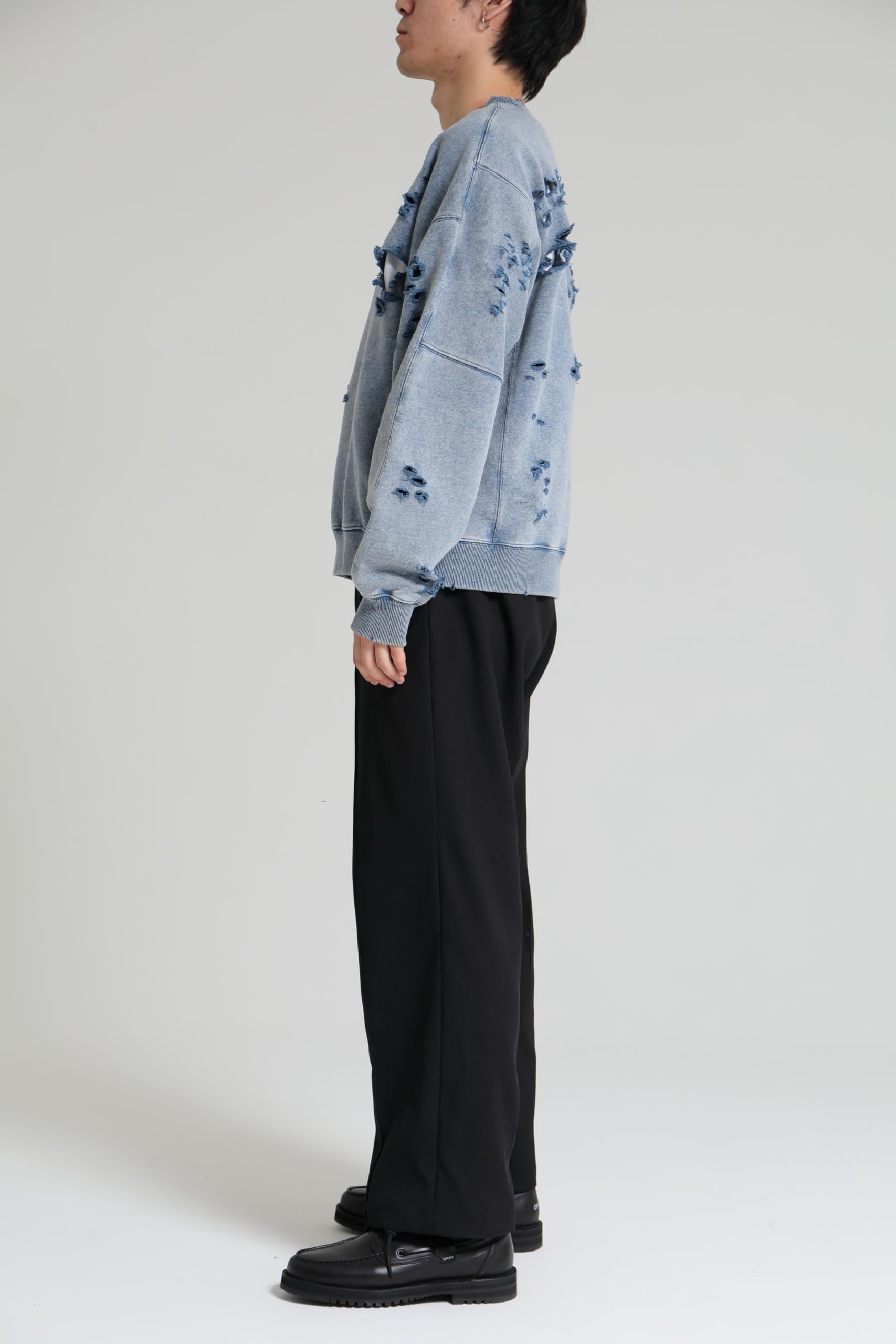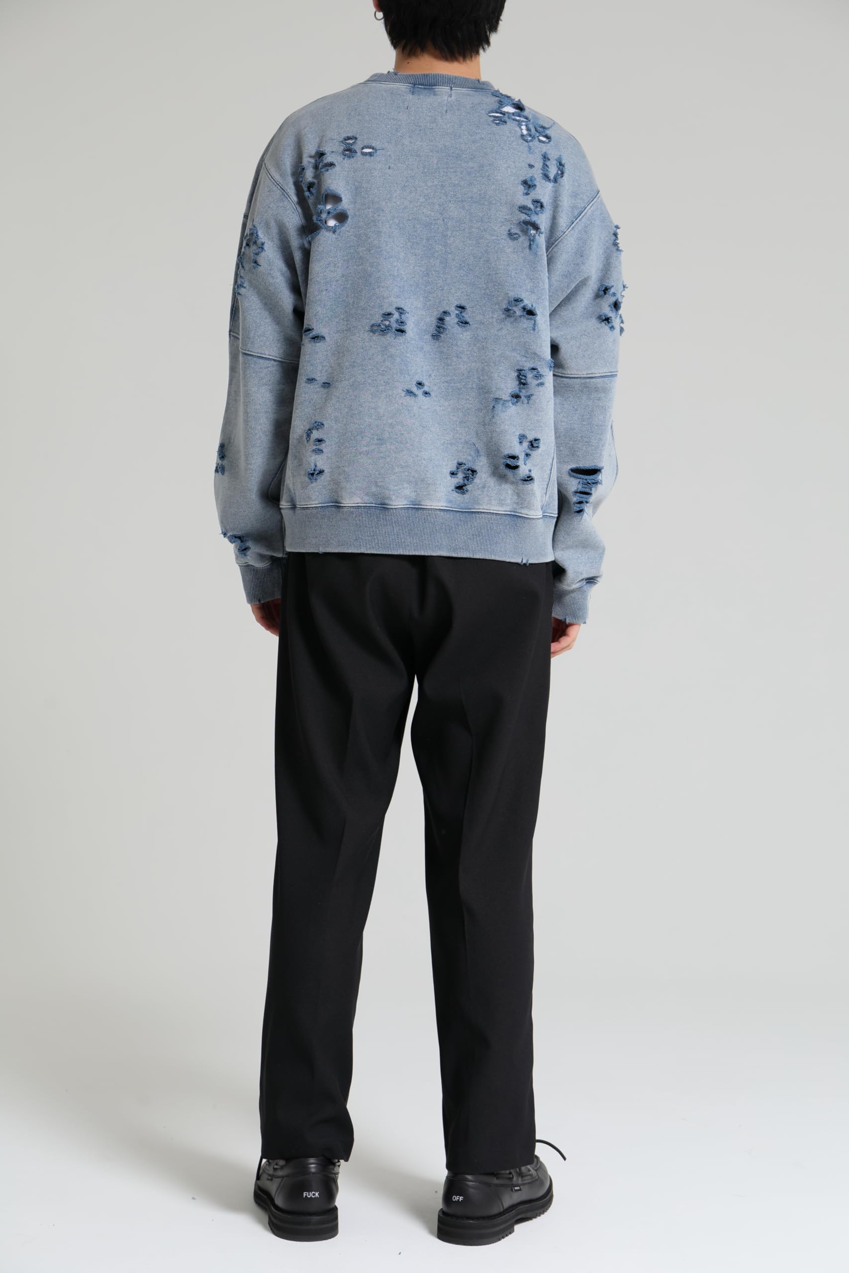 【ブランド説明】 『ブランドが誕生して以来、DELUXEは様々なタームを迎えては変化し、成長を続けてきた。テーラリングやハイストリートといった価値観の融合。そして時代とともに加速するファッションシーンの移ろい。そんな中でDELUXEは自身のルーツである世界各地のストリートカルチャーと、それを雑多に飲み込んでは洗練を重ねる東京という街を誇りにブランドを育んできた。縫製技術からジッパーひとつまでをも徹底的にこだわる洋服作りへの姿勢。古き良き手法と一新されゆくトレンドをたしかにリンクさせていく温故知新の精神。そうして紡いできたストーリーをもとに、着る者に”本物”をもたらすモノ作りを目指していくブランドであり、ストリートの最上級 = DELUXE を目指します。 【商品説明】 オリジナルで作成した肉厚なコットン裏毛素材を使用したクルーネックスウェットシャツ。身頃全体にピグメント加工・ダメージ加工を施し、ヴィンテージな風合いに仕上げた。左袖のダメージ痕下にブランドロゴ、前身頃右下にコピーライトロゴをラバープリントで配置。身頃の左脇にスクウェア型ネームを叩きつけ。身幅にゆとりのあるシルエット。3色4サイズ展開。