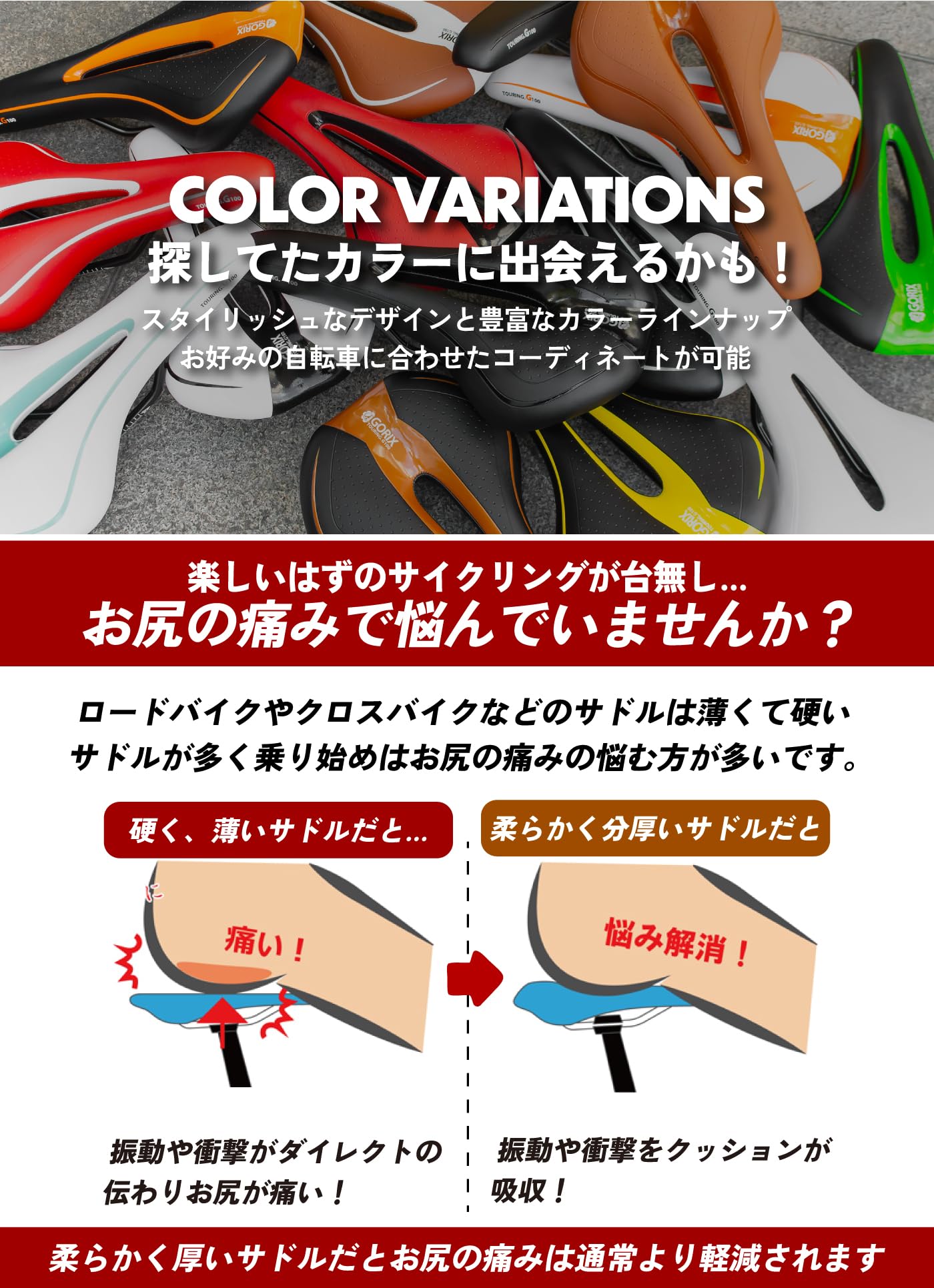 GORIX(ゴリックス) 自転車 低反発 サドル [厚手クッション やわらかタイプ] ロードバイク マウンテンバイク 他対応 GX-C19