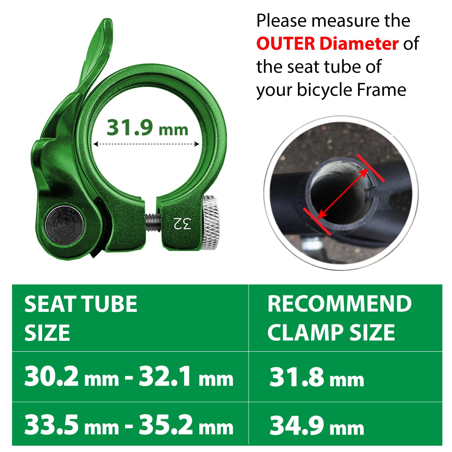 32mmクランプは、30.2〜32.1mmのフレームシート・チューブにフィットします。
