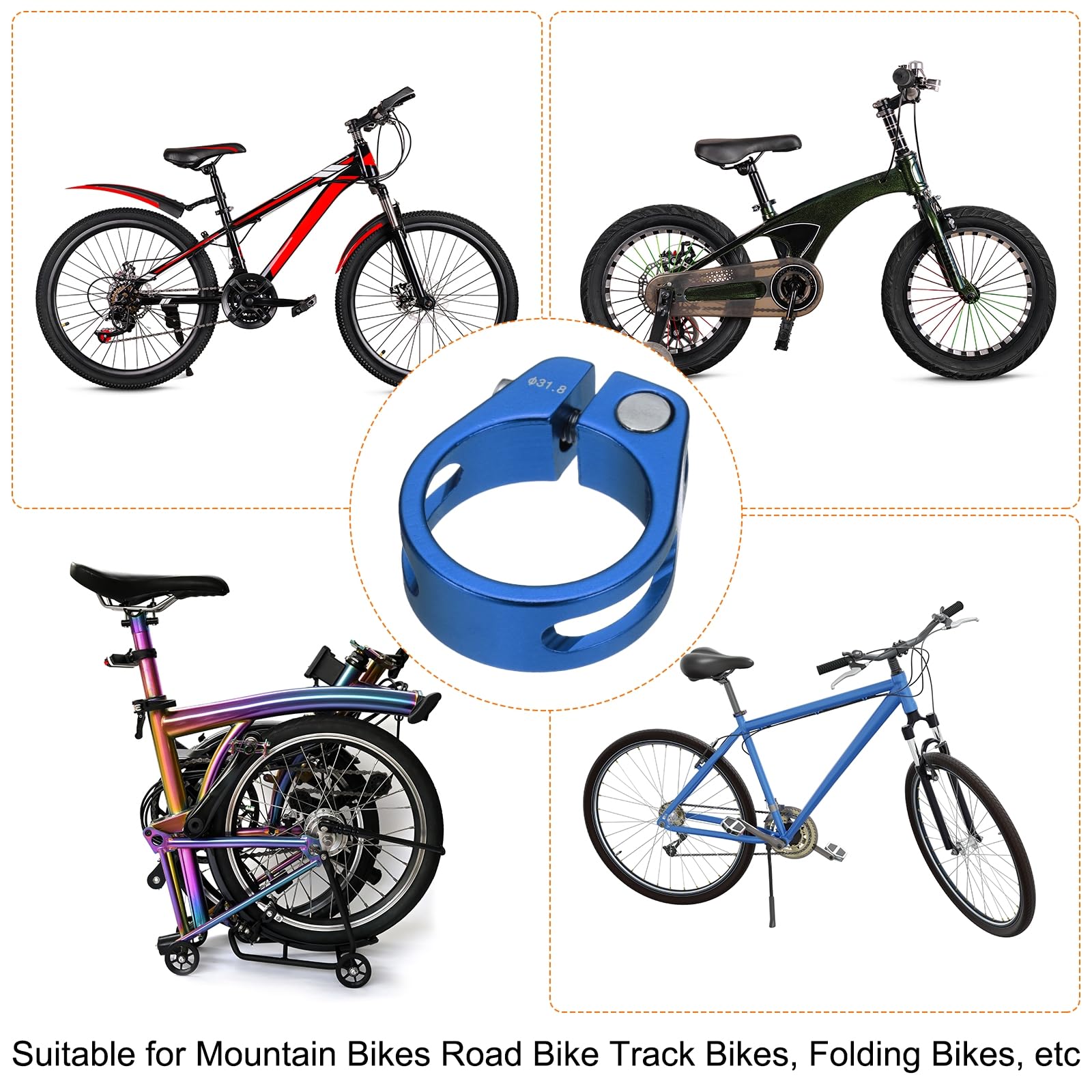 自転車シートポストクランプはどんなスタイルの自転車にも最適なアクセサリーであり、より快適で効率的なシートポストクランプは、より多くのサイクリング愛好家に愛されています。当社のシートポストクランプは、ロードバイク、マウンテンバイク、折りたたみ自転車など、あらゆるタイプの自転車に適しています。