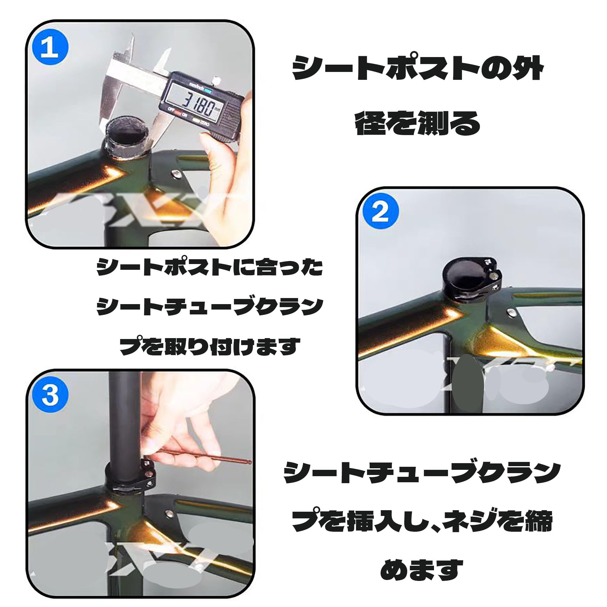 【取り付け簡単】この 自転車 クイックリリースシートポストクランプは、素早くリリースする機能があり、取り付けが非常に簡単です。ねじを回すだけで、簡単に位置調整ができます。