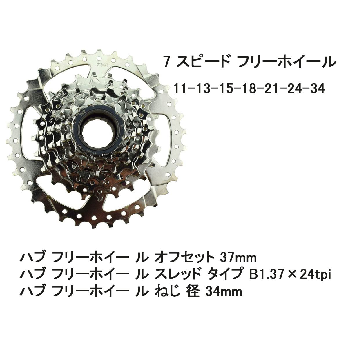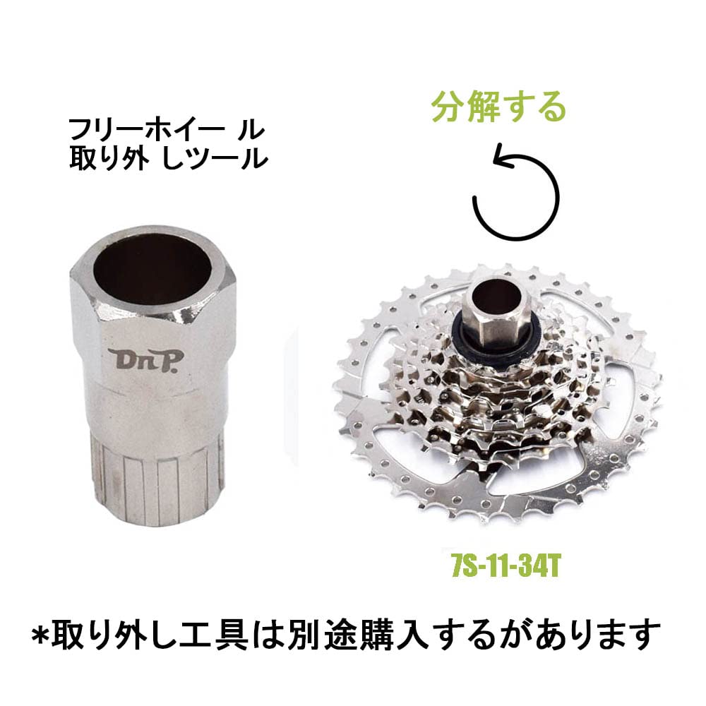 【7スピードフリーホイール】最大のクライミングギア、11-13-15-18-21-24-34歯の7スピード。
